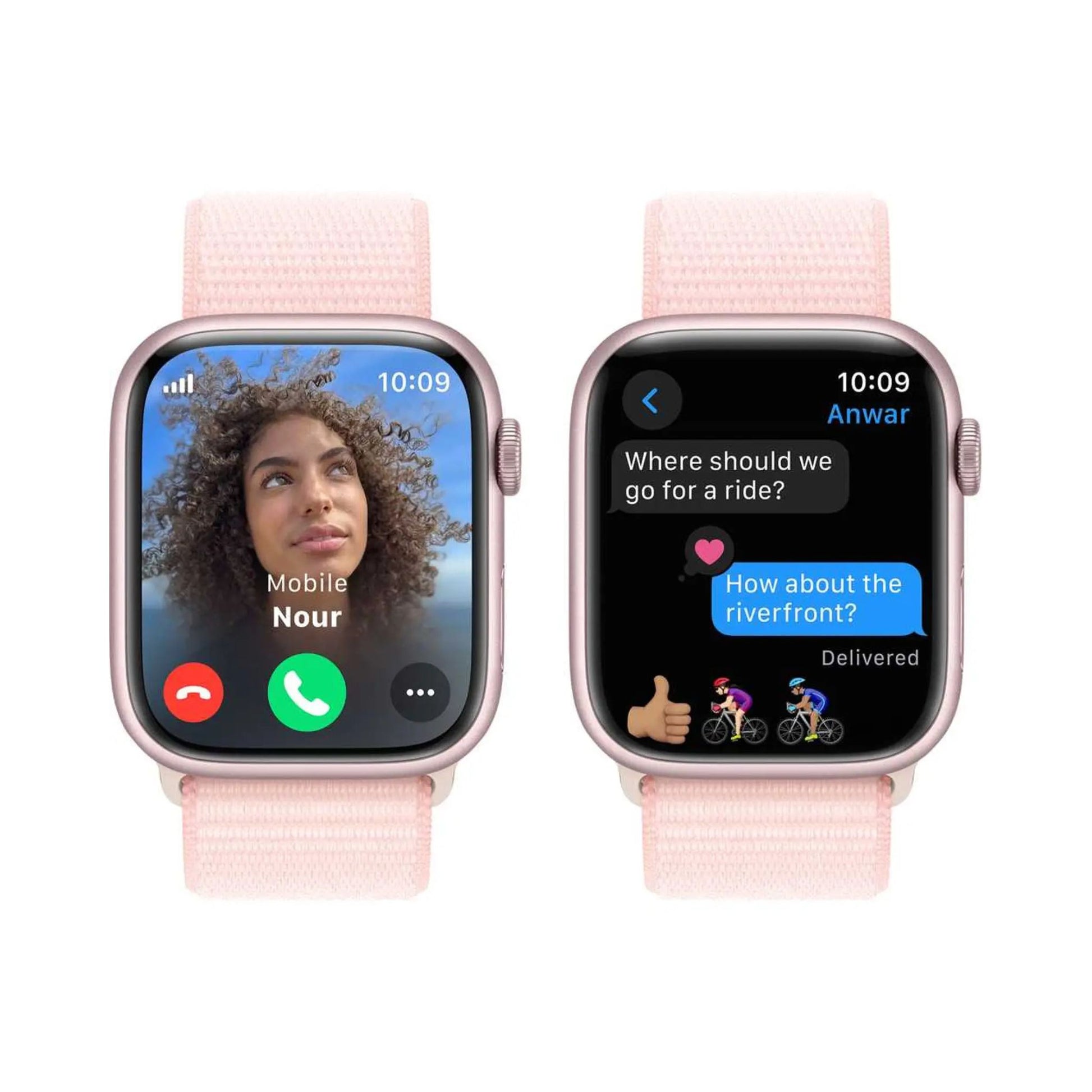 The Workout app gives you a range of ways to train, plus advanced metrics for more insights about your workout performance. An aluminium Apple Watch Series 9 paired with the latest Sport Loop is carbon neutral. It works seamlessly with your Apple devices and services. Unlock your Mac automatically. Get approximate distance and directions to your iPhone with Precision Finding on supported iPhone models. Apple Watch Series 9 requires iPhone Xs or later with iOS 17 or later. With watch straps in a range of styles, materials and colours, as well as stylish and functional watch faces with complications tailored to your interests, you can change your watch to fit your mood or the moment.