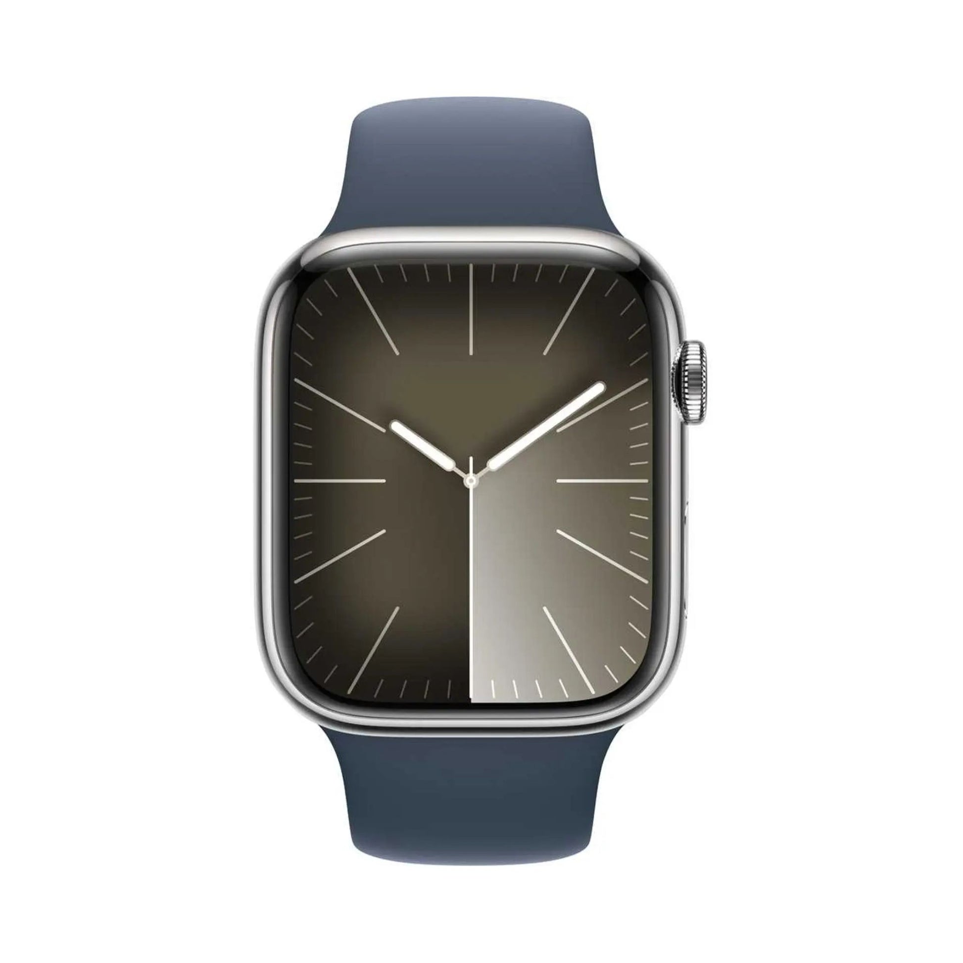 Apple Watch Series 9 GPS + Cellular 41mm Silver Stainless Steel Case With Storm Blue Sport Band