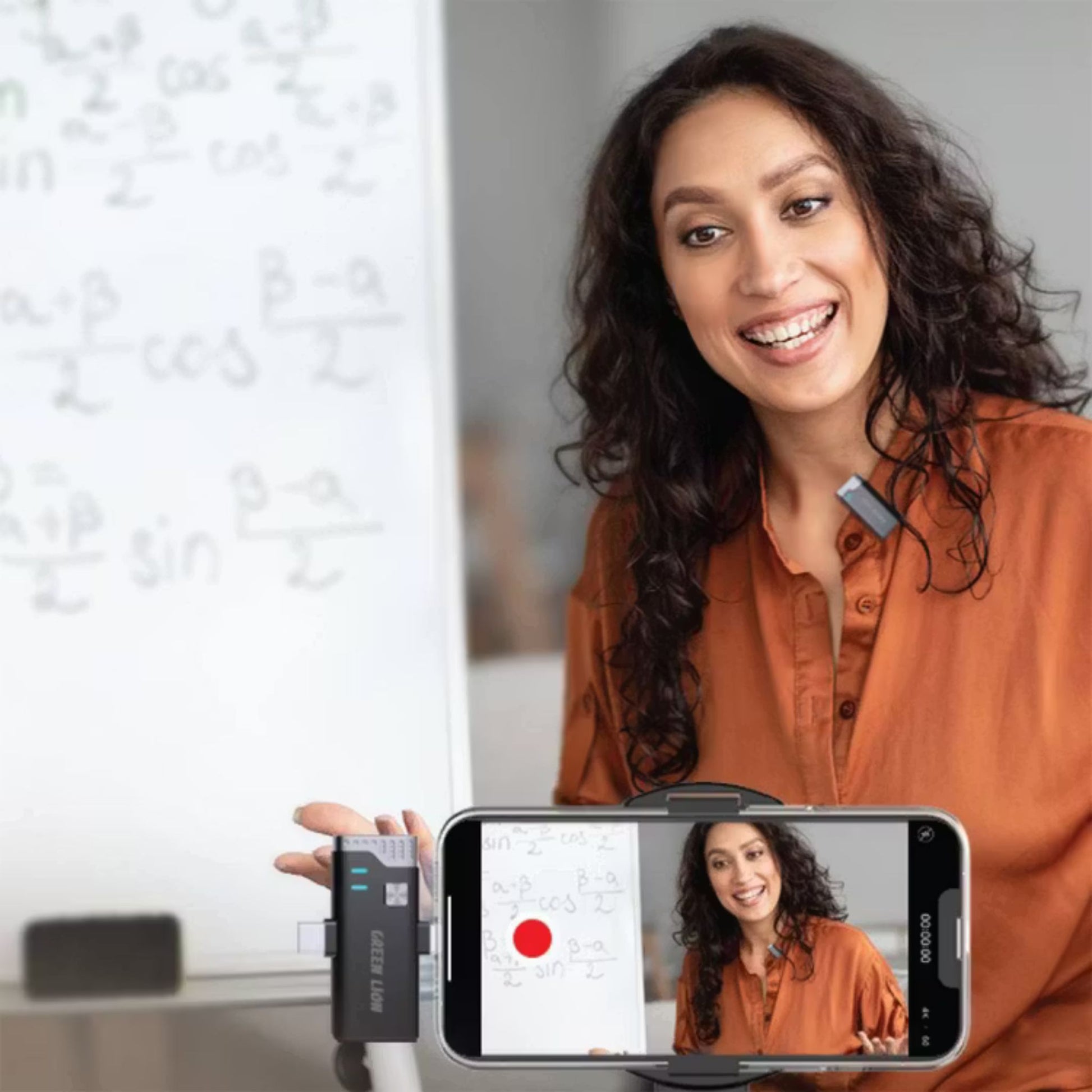 Green Lion 3-in-1 360° Microphone with Up to 21 Hours Working Time, USB-C & Lightning Connector Ports, Up to 20m Transmission Range, Noise Canceling, Automatic Pairing - Black
