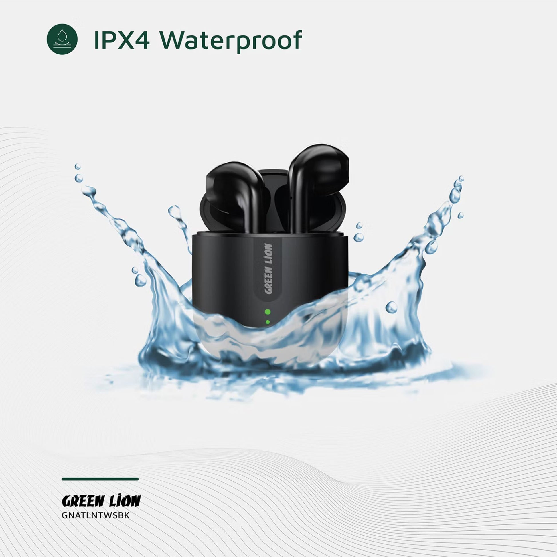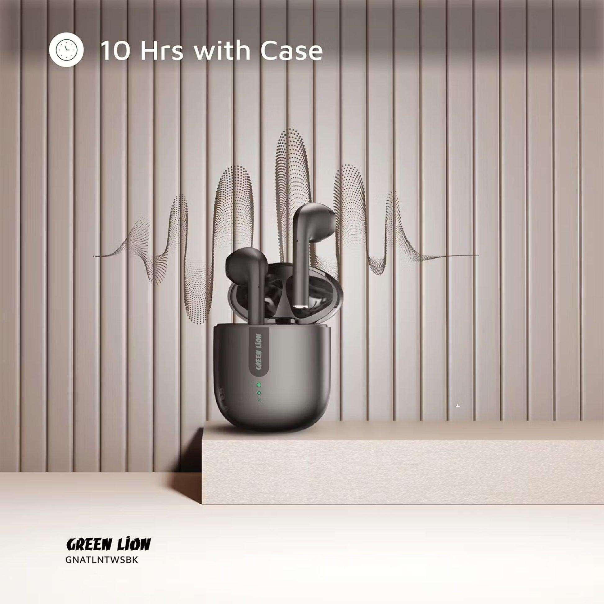 Green Lion Atlanta True Wireless Earbuds with Built-in Microphone, IPX4 Waterproof Level, Voice Assistant, HiFi Sound, Touch Control, 3 Hours Playtime - Black