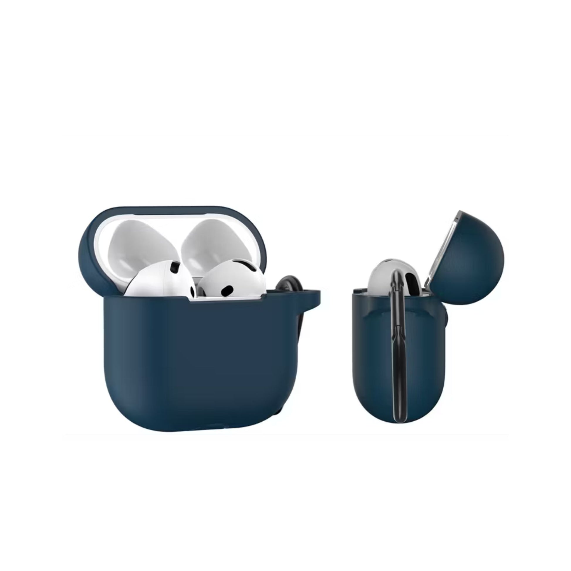 Green Lion Berlin Series Silicone Case for Airpods 4, Metal Carabiner, 360° Full Protection, Shock Absorbent, Skin Friendly Silicone, Washable Material - Blue