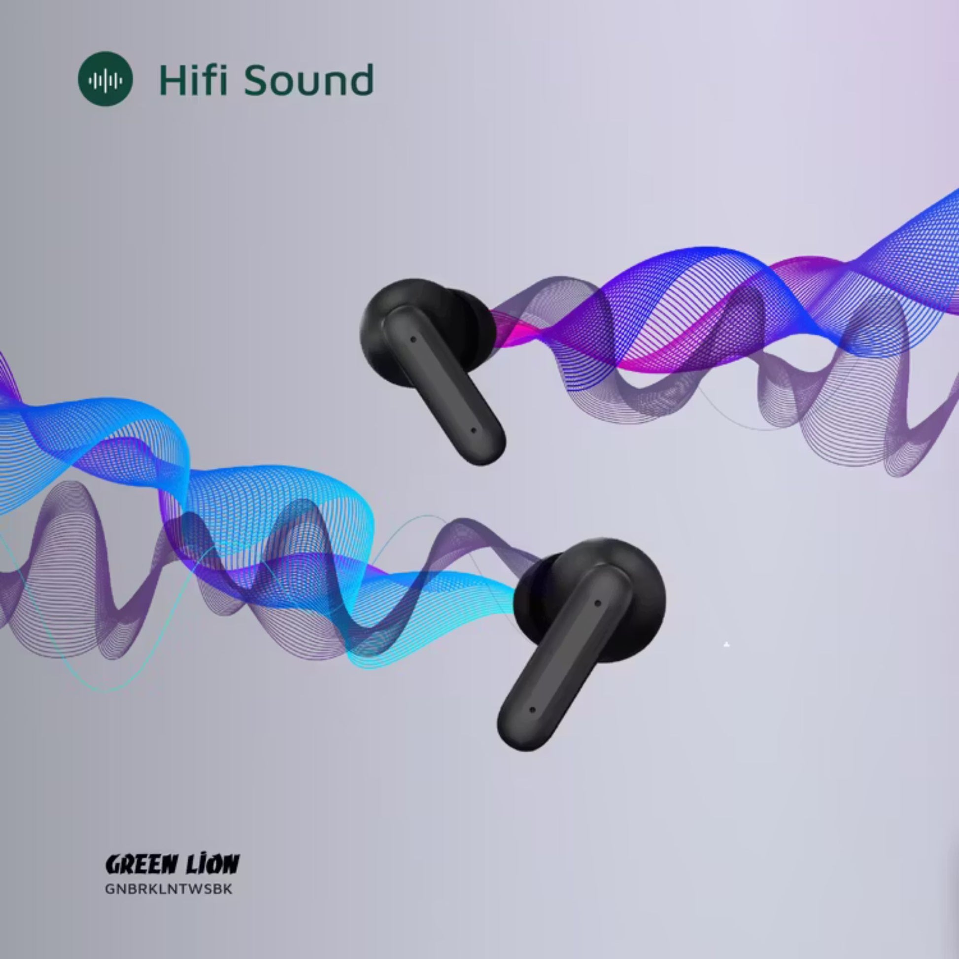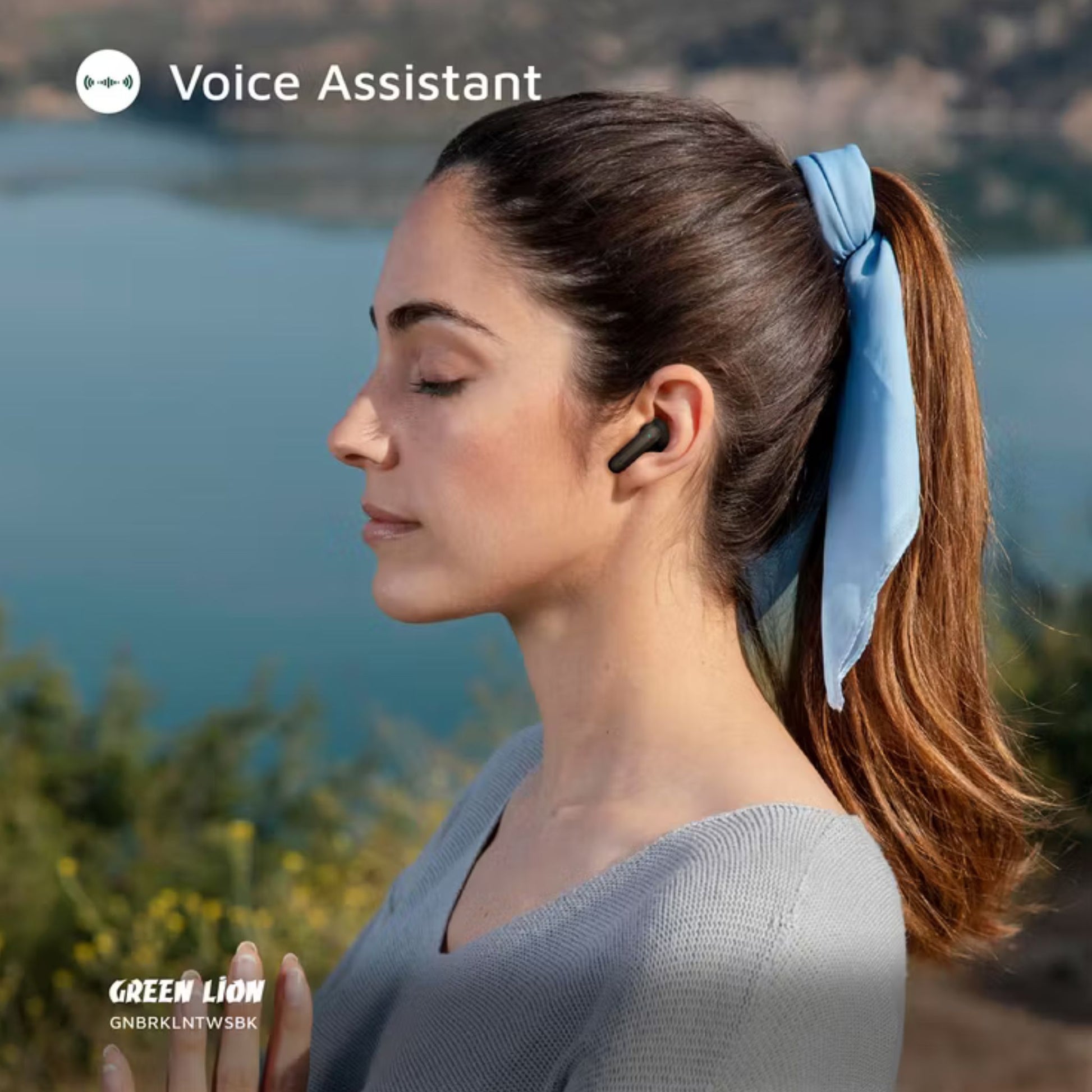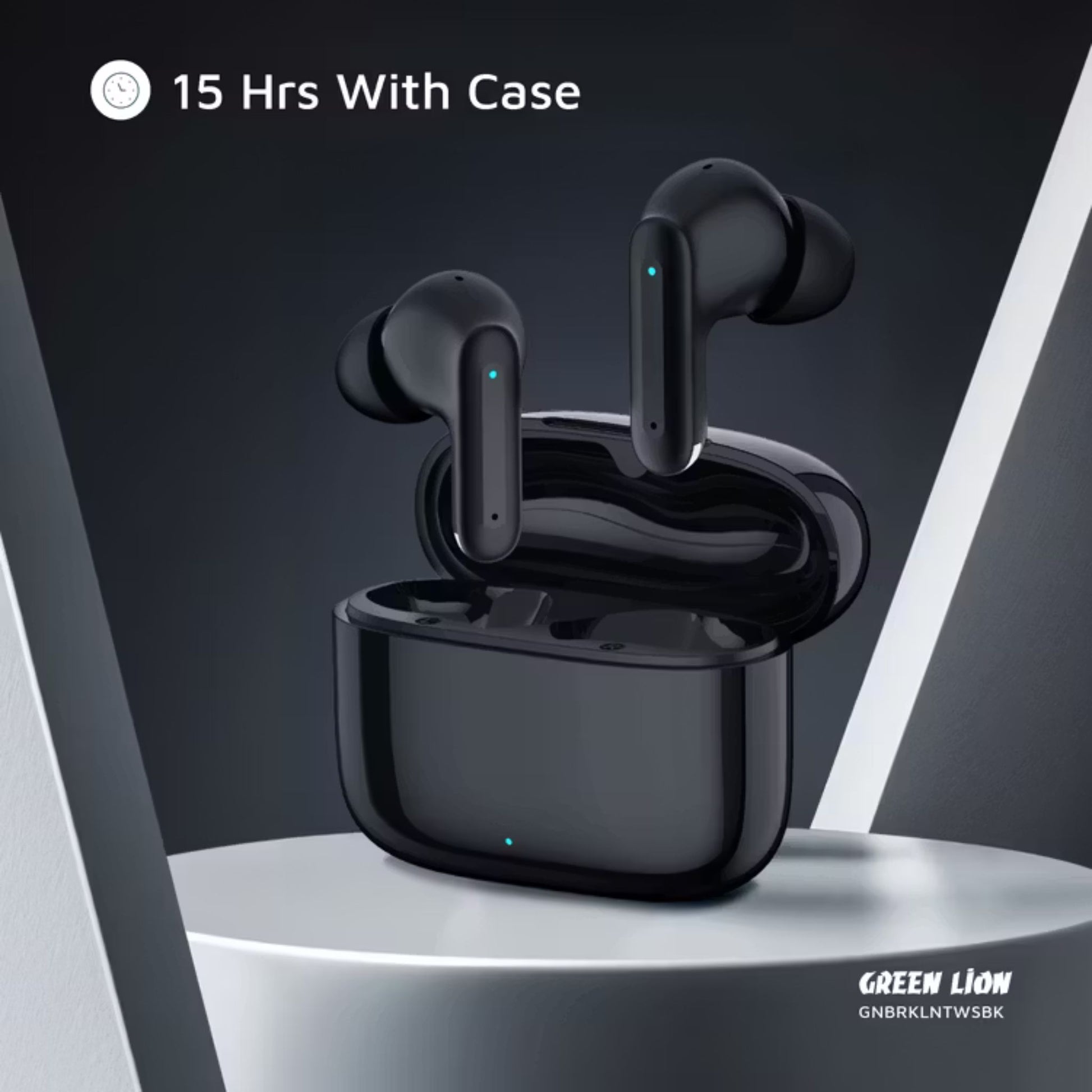 Green Lion Brooklyn True Wireless Earbuds with Voice Assistant, 4 Hours Playtime, Built-in Microphone, HiFi Sound, Touch Control, Dual-Mic - Black
