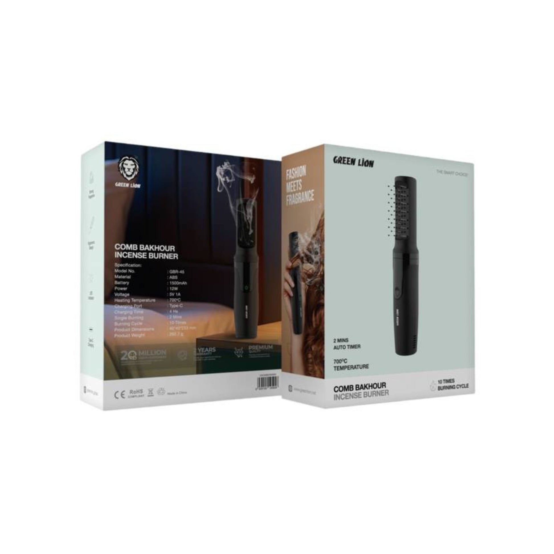 The Green Lion Comb Bakhour Incense Burner makes for a modern and portable accessory that enhances your environment by enabling you to enjoy traditional scents. This mini burner is constructed from strong ABS combined with a lightweight design that forms great applications for home or travel. It's a 1500mAh rechargeable battery powered by 12W output that reaches up to 700 degrees Celsius, giving a heavy and long-lasting aroma. It carries a 2-minute auto timer and burning cycles of up to 10 times per charge. The green and environmentally friendly incense burner is pretty efficient. The use of LED indicates the status of charging, while the Type C port makes it all fast and efficient charging that costs no more than 4 hours. Easy handling due to an avant-garde design structure for comfort while using. The Green Lion Comb Bakhour Incense Burner is great for creating a peaceful atmosphere filled with strong, traditional fragrances, combining modern and historical features.
