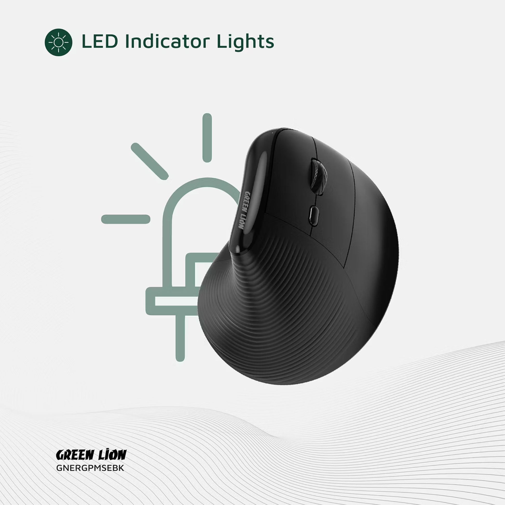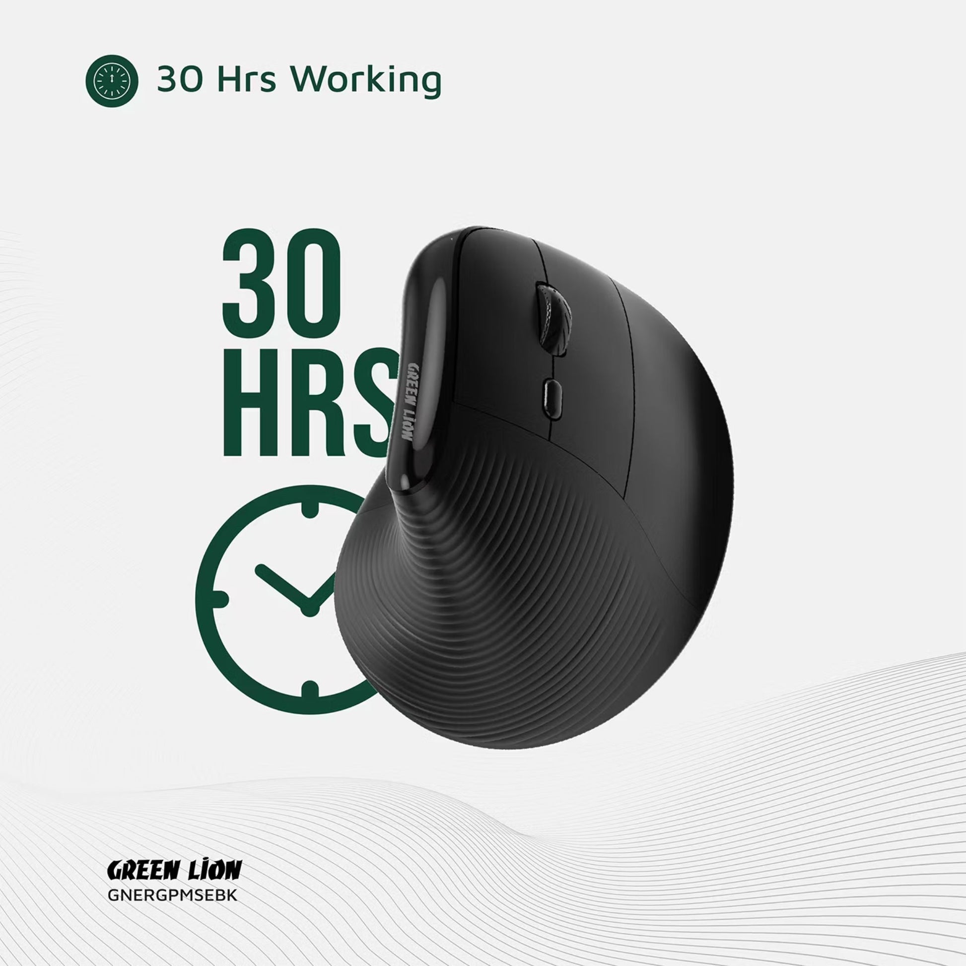 Green Lion Ergo Grip Vertical Mouse with Adjustable DPI, Multi-Device Pairing, 2 Hours Charging Time, 30 Hours Working Time, 60cm Type-C Cable Length, 10m Transmission Distance - Black
