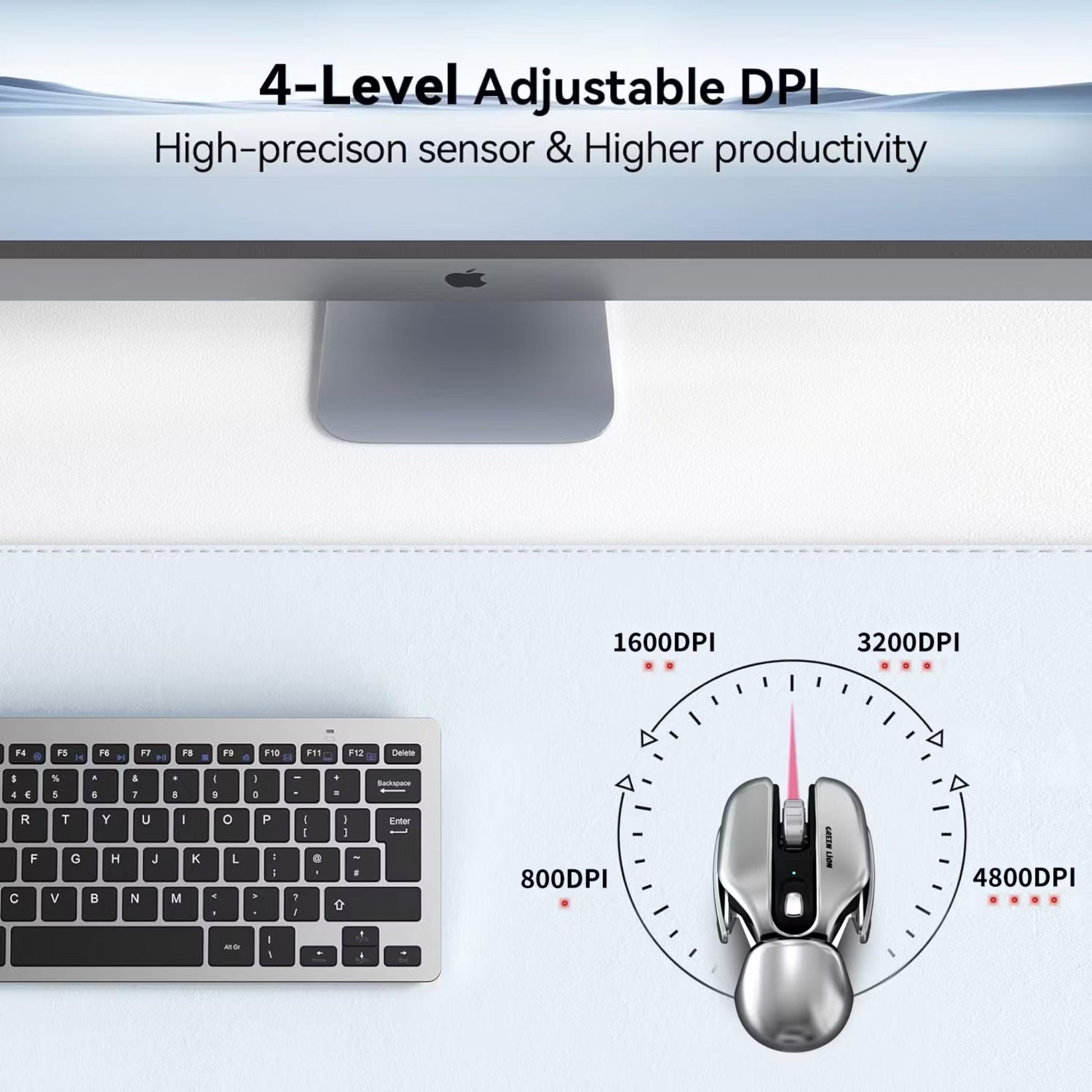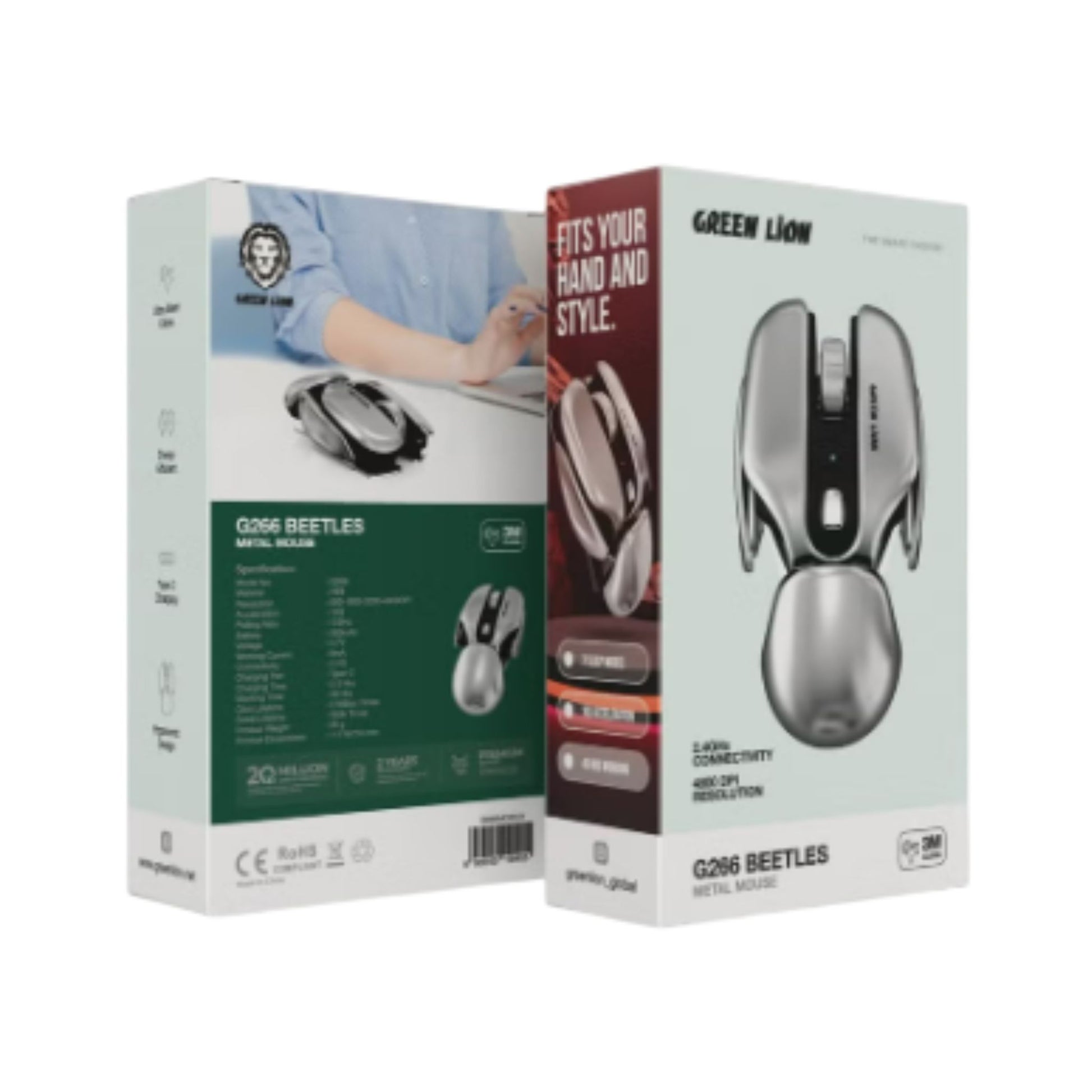Green Lion G266 Beetles Metal Mouse with 3 Sleep Modes, 48 Hours Working Time, 3 Million Clicks Lifetime, 10G Acceleration, Energy Efficient - Gray