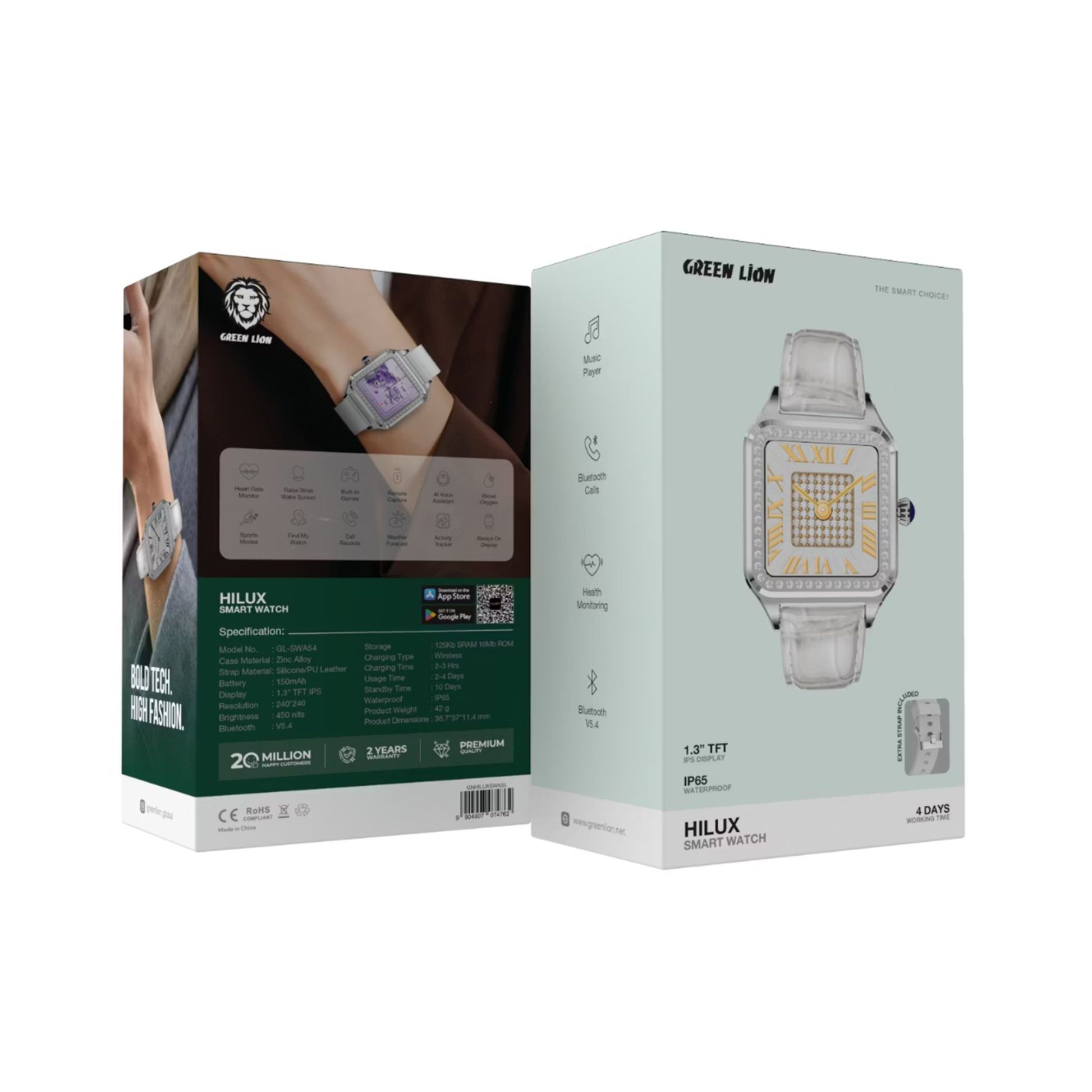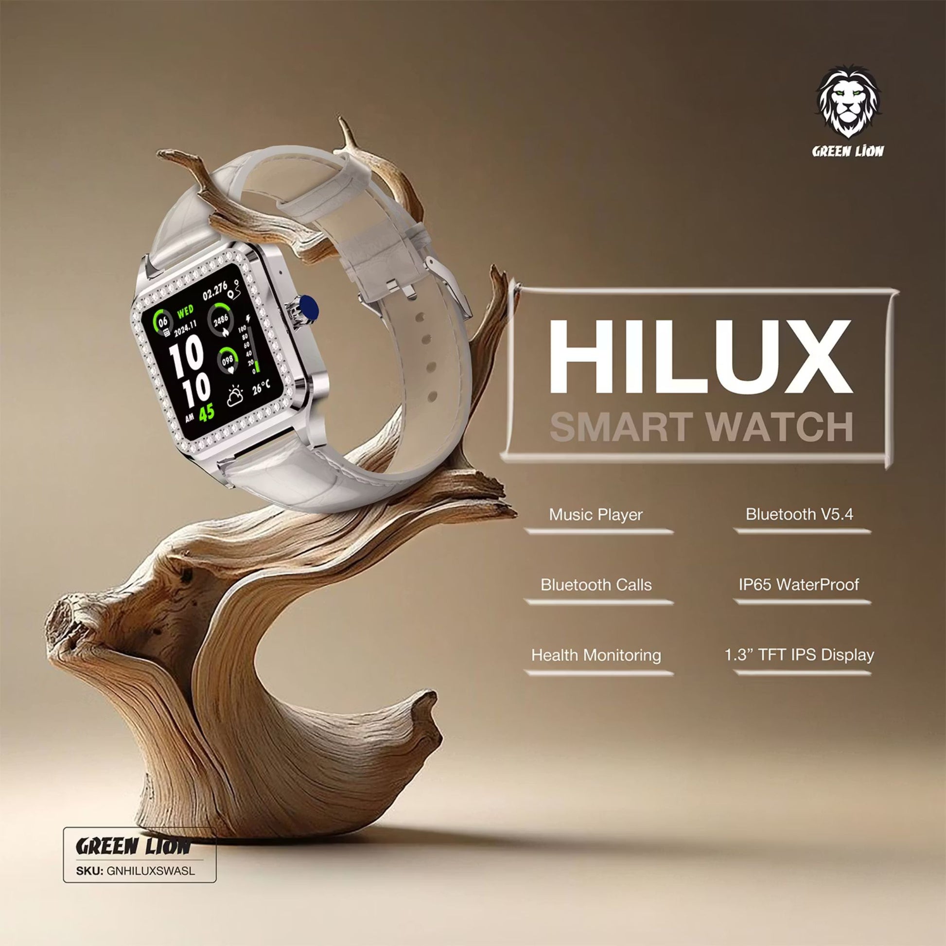 Green Lion Hilux Smart Watch with Extra Strap, 1.3" TFT IPS Display, 2-4 Days Working Time, 450nits Brightness, Sport Modes & Activity Tracking, Health Monitoring, 150mAh Battery, Bluetooth Version 5.4 - Silver