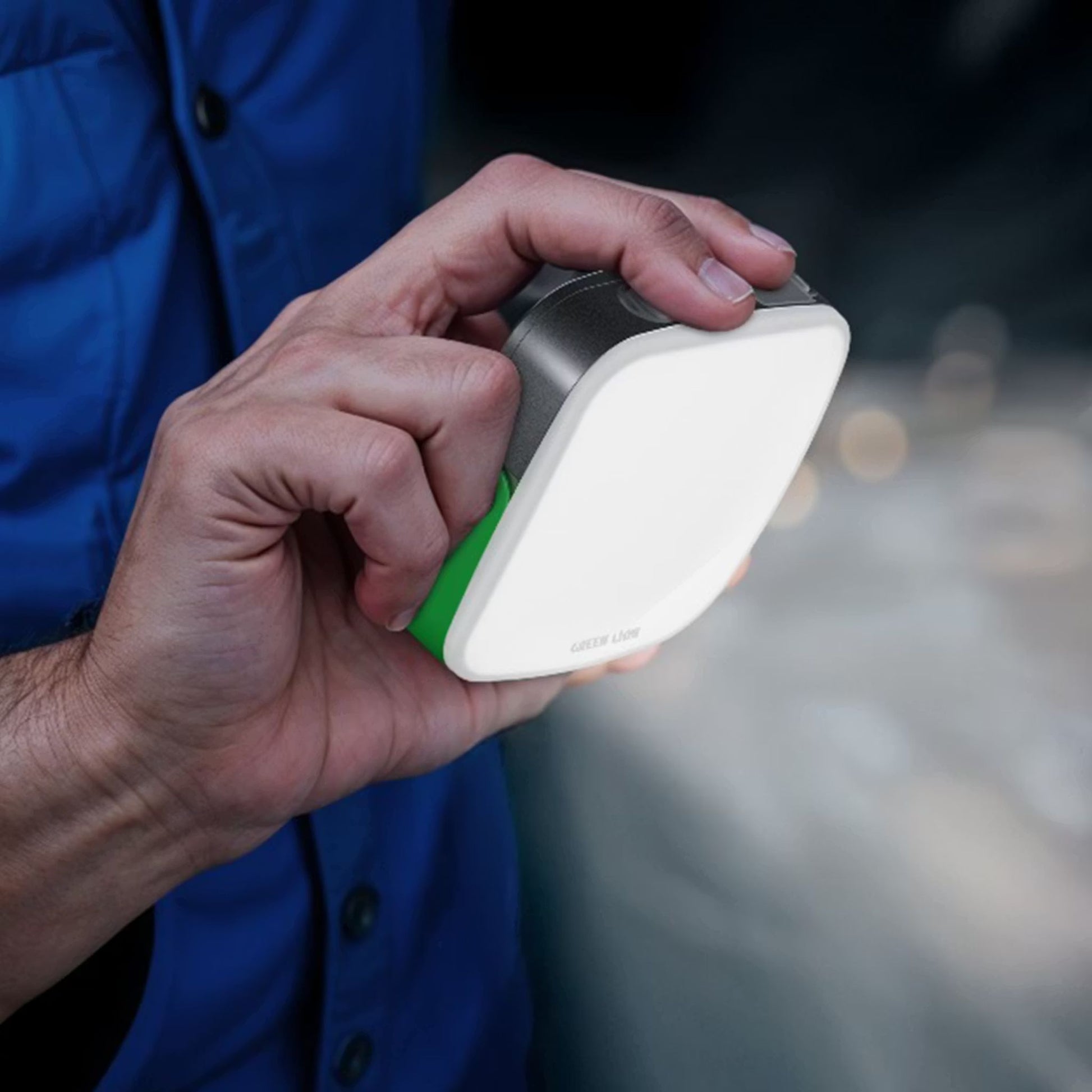 The Green Lion Lumenix Portable LED Light with Built-in Power Bank provides a convenient charging and lighting solution for contemporary, mobile lives. This LED light offers ideal lighting in five selectable colors with a power rating of 10W and a brightness of 800 lumens. You can select the ideal setting for any scenario thanks to the color temperature's range of 6500K to 3500K. It has 20 warm white and 30 white LED beads, which provide natural and balanced light. The lamp has three brightness settings: low, medium, and high. Its 90° adjustable angle allows for flexible placement. This light has an IPX4 waterproof rating. Its dual 2000 mAh battery makes it reliable and long-lasting. You can use it indoors or outdoors. The USB-C charging connector allows for a quick recharge in six hours. Plus, the built-in power bank has a USB-A output to charge your devices. The Green Lion Lumenix can run for six to twenty-four hours, depending on the environment. This makes it an ideal companion for emergencies or adventures. The touch control and digital display provide simple, straightforward operation.