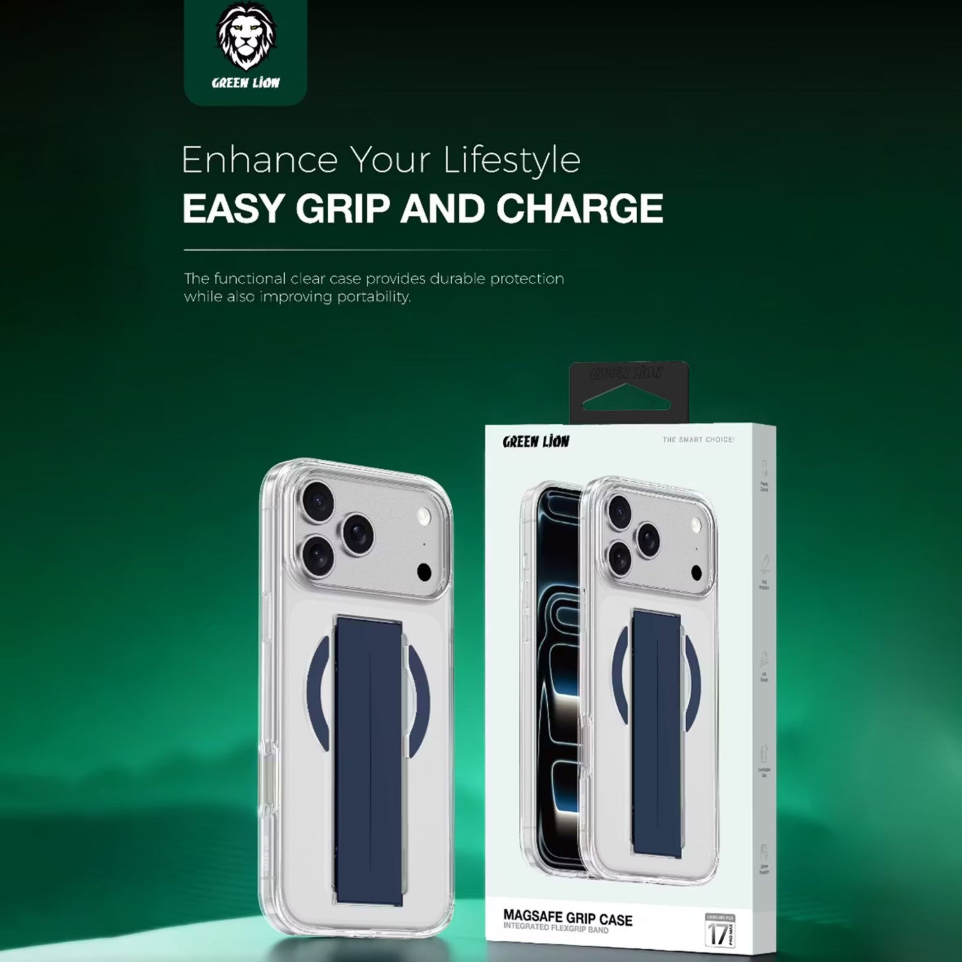 The Green Lion MagSafe Grip Case for iPhone 17 Pro Max in Blue Titanium is designed to ensure ideal security and a comfortable grip for your device. The military-grade protection keeps your device safe from drops and impacts all day. The screen and camera guard feature offers extra protection. It helps stop scratches and damage. This case stays clear and beautiful. Its anti-yellowing feature keeps it looking clear. MagSafe compatibility allows you to connect accessories. This upgrades your iPhone's performance while still guarding it. The comfortable grip makes holding your iPhone comfortable, offering both style and function. This case offers strong protection, whether you're at home or on the go. It also has an elegant design.
