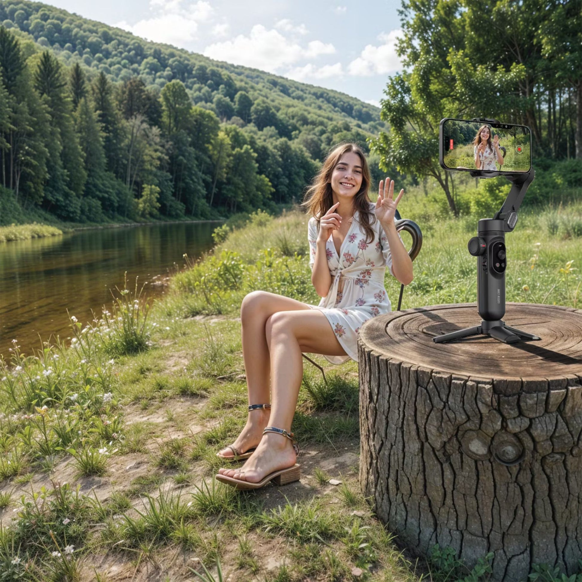 Green Lion New York Gimbal Smart Face Tracking with 6 Shooting Modes, Focus & Zoom Control, 310° Pan Rotation, 250g Load Capacity, Built-in Fill Light - Black
