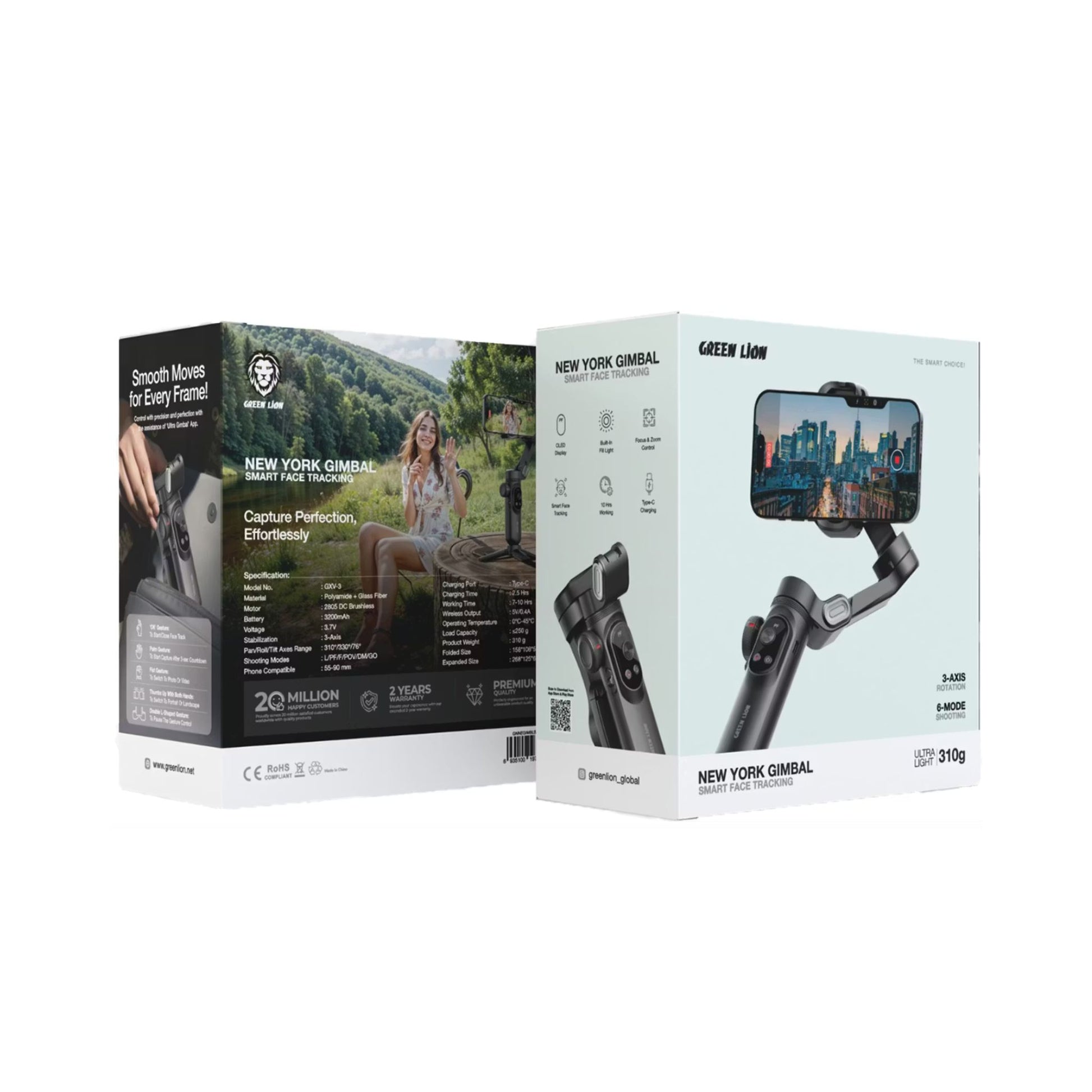 The Green Lion New York Gimbal Smart Face Tracking is a full-featured stabilizer designed to improve your photography and videography experience. Its 3-axis stabilization and 310° pan rotation guarantee accurate, fluid movements. This guarantees a professional-quality output. It has six shooting modes (LPF, FF, POV, DM, and GO) to meet any creative need. Its advanced face tracking tech keeps your subject centered in the frame. The gimbal has a 250g load capacity. It supports focus and zoom control for better accuracy and creativity. It is compatible with most smartphones and lightweight cameras. With its OLED display and built-in fill light, it offers great visibility and lighting for your photos. Its 3200mAh battery guarantees long-lasting performance with a working time of 7 to 10 hours. The Green Lion New York Gimbal Smart Face Tracking is a modern and portable accessory that is ideal for artists who are always on the move.