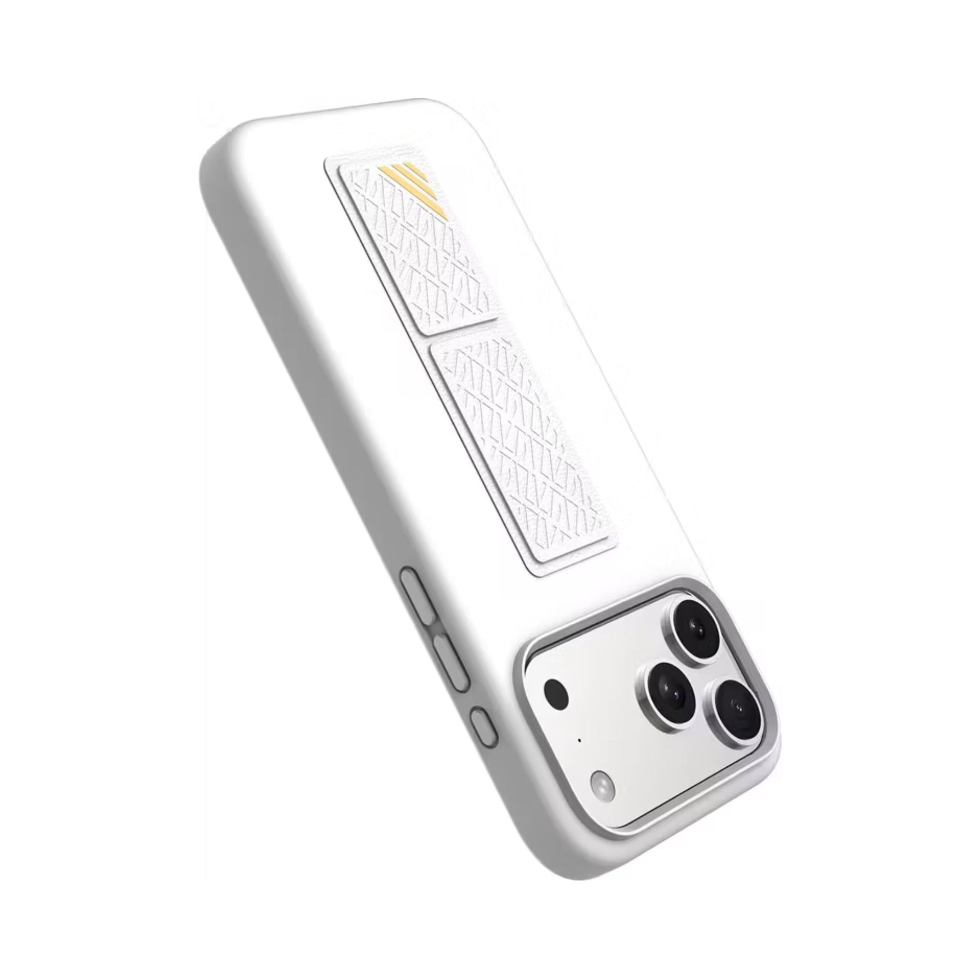 Levelo Morphix Silicone GripStand Case for iPhone 17 Pro, Hands-Free Viewing, True Microfiber Interior Lining, Horizontal & Vertical Stand, Shock-Resistant Bumper, Raised Bezels for Camera & Screen, Slim Fit Design - Silver