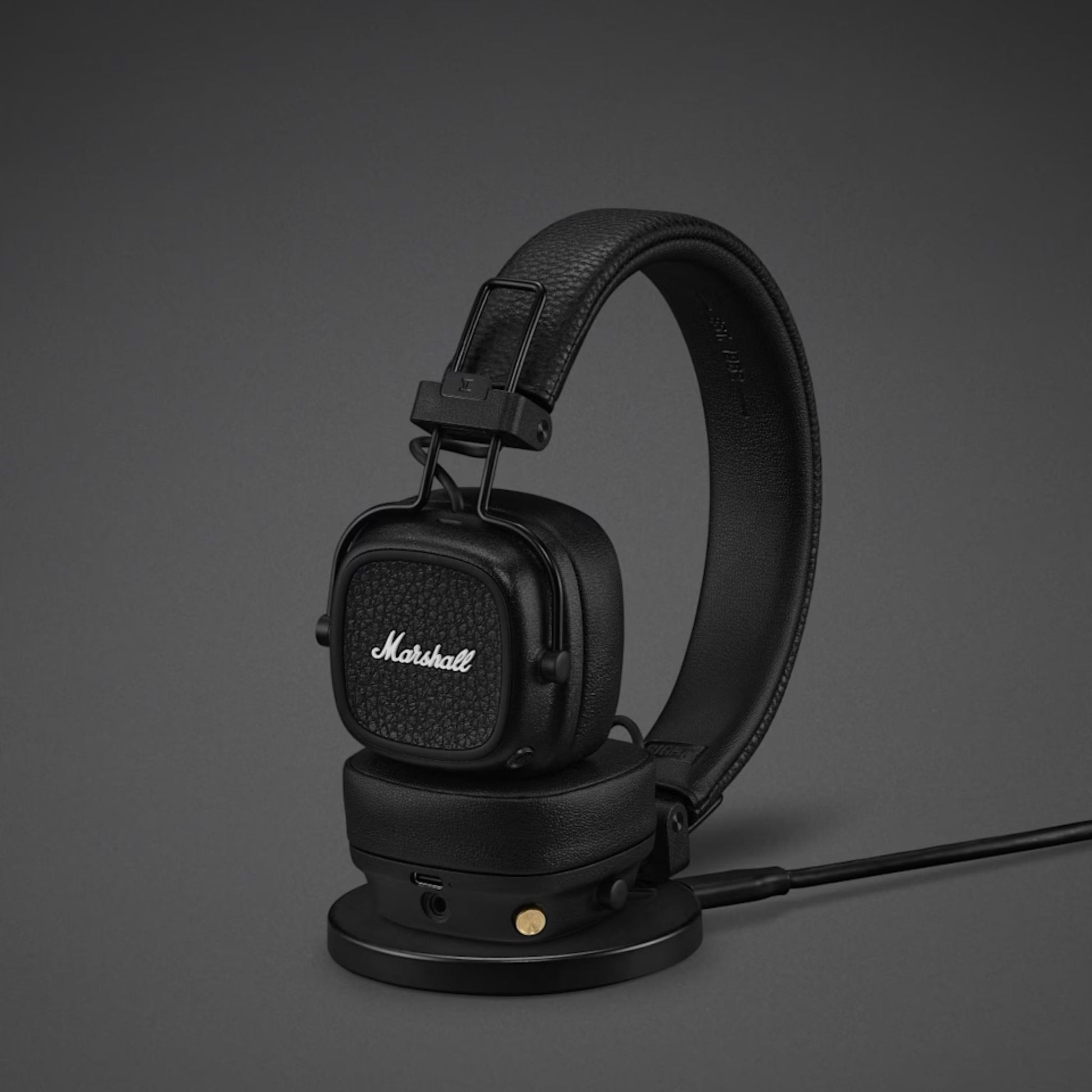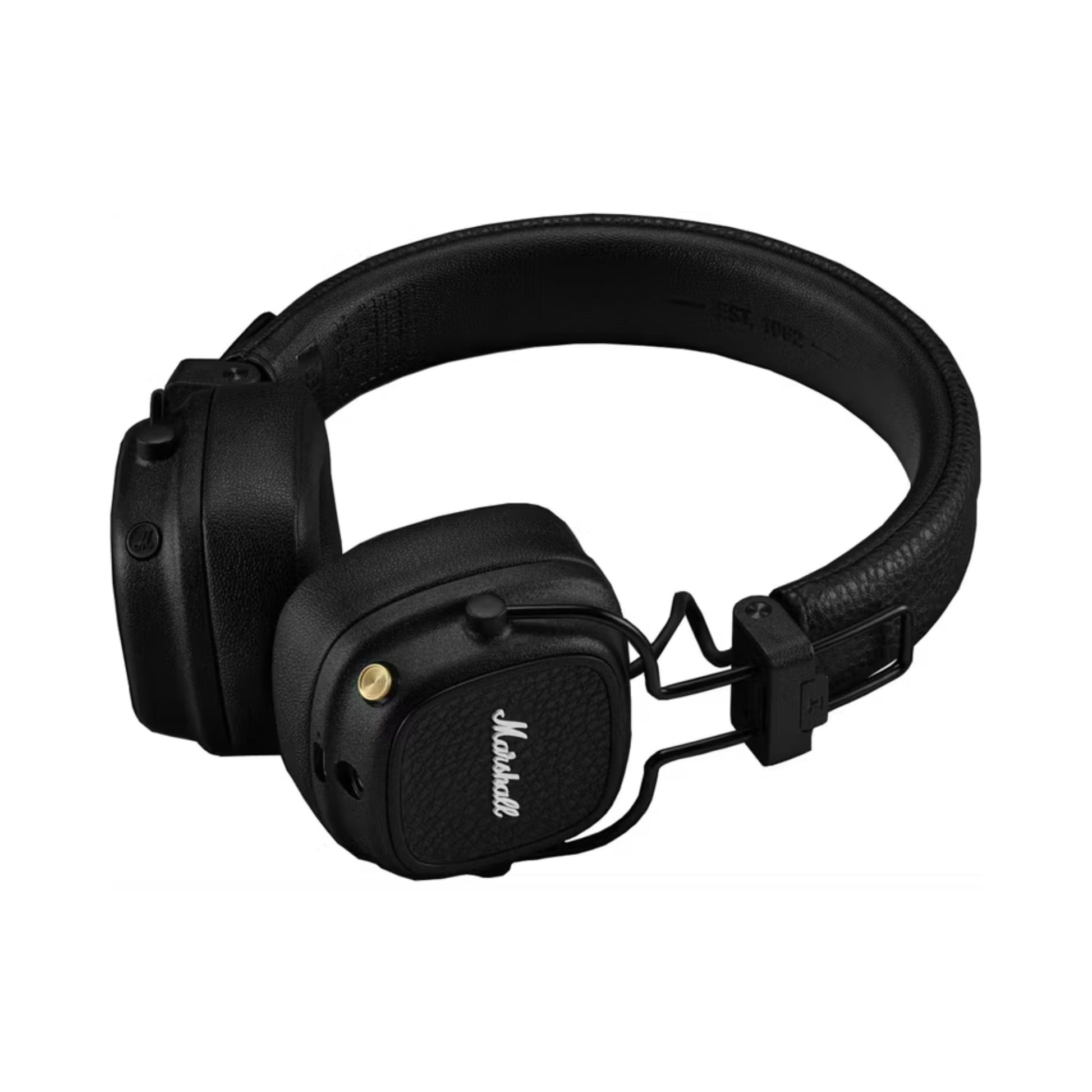 Marshall Major V Wireless On-Ear Headphones with Rugged & Foldable Design, Wireless Charging, 3 Hours Charging Time, Customizable M-Button, Bluetooth Version 5.3, Up to 100 Hours Play Time - Black