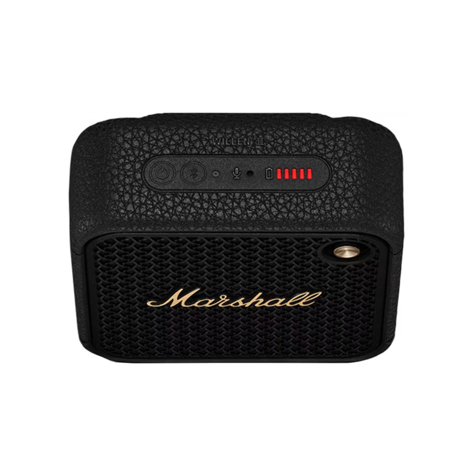 Marshall Willen II Compact Portable Wireless Speaker with Bluetooth Version 5.3, Water Resistant, Fast Charging, 17 Hours Play Time, 2.5 Hours Charging Time, Type-C Charging Port, Built-in Microphone, Lightweight Design - Black / Brass