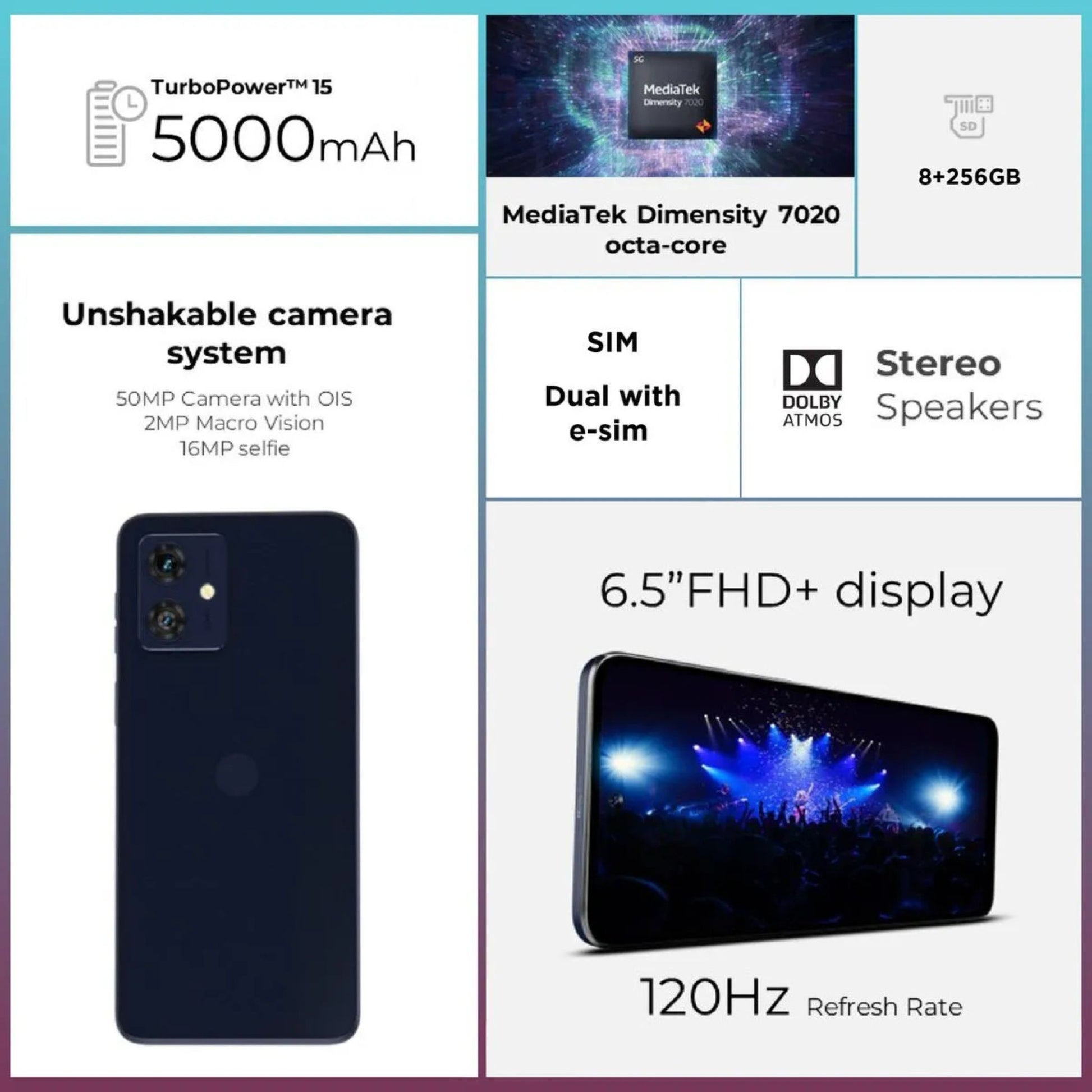 - Immersive 6.5” Full HD+ Display – IPS LCD screen with 120Hz refresh rate and Dolby Atmos stereo speakers for a vibrant, cinematic experience.