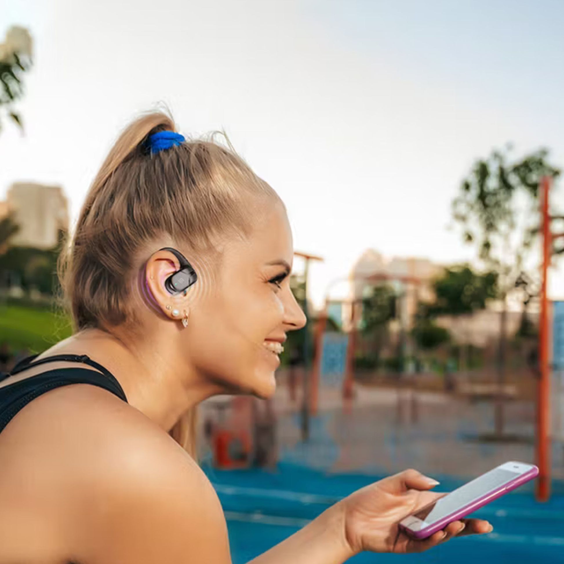 The Porodo Octopus Open-Ear Wireless Earbuds with Touch Control offer a unique and comfortable listening experience. These open-ear earbuds are great for active users. They provide excellent sound quality and let in outside noise. This way, you stay aware of your surroundings. They offer fast and reliable connectivity with Bluetooth 5.4. This ensures easy pairing with your devices. With a 35mAh capacity, these earbuds may last up to 5 hours between charges. With their Type-C interface and 300mAh capacity, the accompanying charging case completes a full charge in 1.5 hours. The earbuds' response time range is 20 Hz to 20 kHz, which produces dramatic, clear sound for calls and music. With only a tap, you can effortlessly control music, calls, and volume settings thanks to the touch control feature. The Porodo Octopus Open-Ear Wireless Earbuds offer comfort, style, and performance.