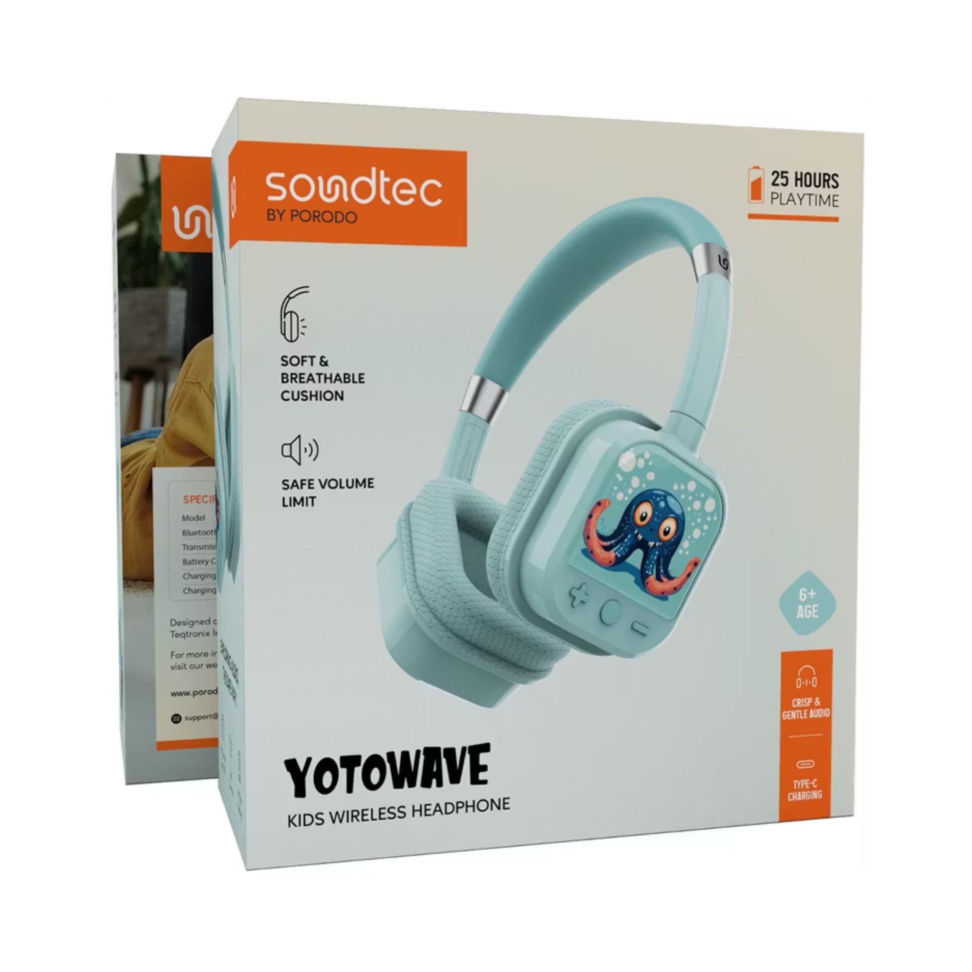 Porodo Soundtec Yotowave Kids Wireless Headphones with Comfortable & Breathable Cushion, 200mAh Battery, Up to 25 Hours Play Time, 40mm Speaker Size, Bluetooth Version 5.4, Recommended for Kids Aged 6+, Skin-Friendly Material, Safe Volume Limit - Bright