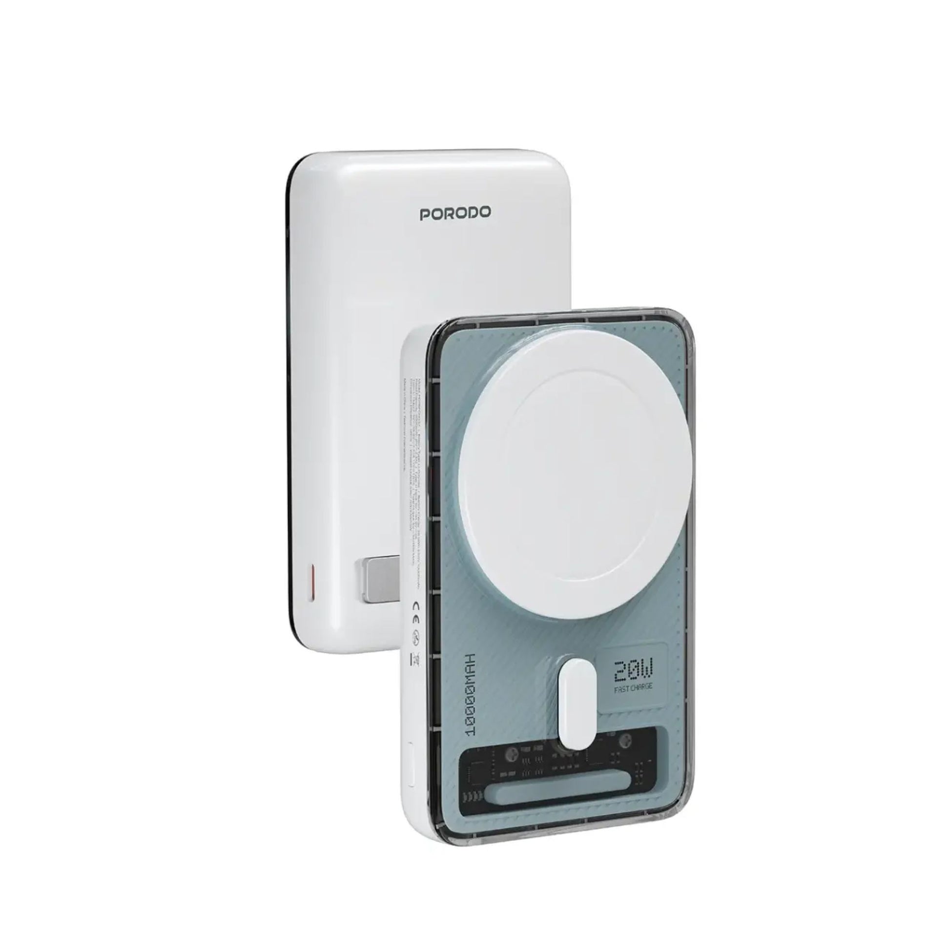 Porodo Sovo MagSafe Power Bank 5000mAh & 10000mAh with PD 20W Wired/Wireless Fast Charging, USB-C Input/Output, Charging LED Indicator, Compact Lightweight Design – White