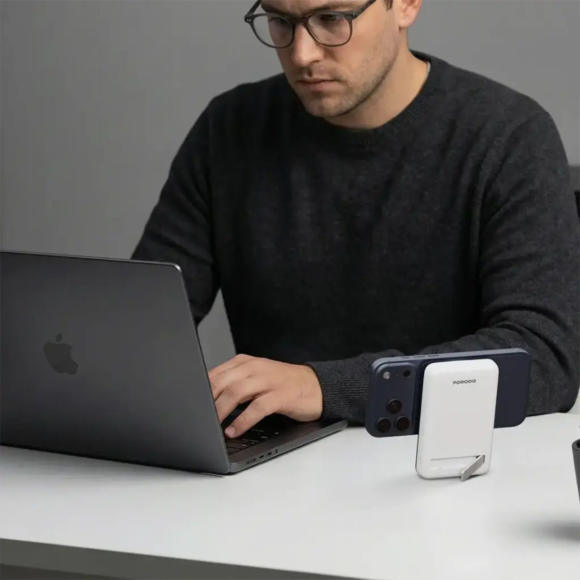 The Porodo Sovo MagSafe Power Bank with Charging LED Light - White serves as a lightweight charging solution for everyday use. The product establishes dependable wired and wireless power delivery through its compact design, which combines PC and ABS materials. The device offers emergency power solutions through its 5000mAh and 10000mAh battery capacities, which enable users to power their devices through USB-C or magnetic attachment. The device supports different devices through its 20W wired output and multiple wireless charging options, which go up to 15W. The MagSafe-compatible design ensures secure alignment, while the charging LED light keeps you informed at a glance. Its USB-C input and output allow flexible charging options, and simultaneous charging and discharging make it practical when you need power on the move. The product functions as a compact and efficient item that easily integrates into contemporary lifestyles while maintaining a lightweight design and straightforward usability.