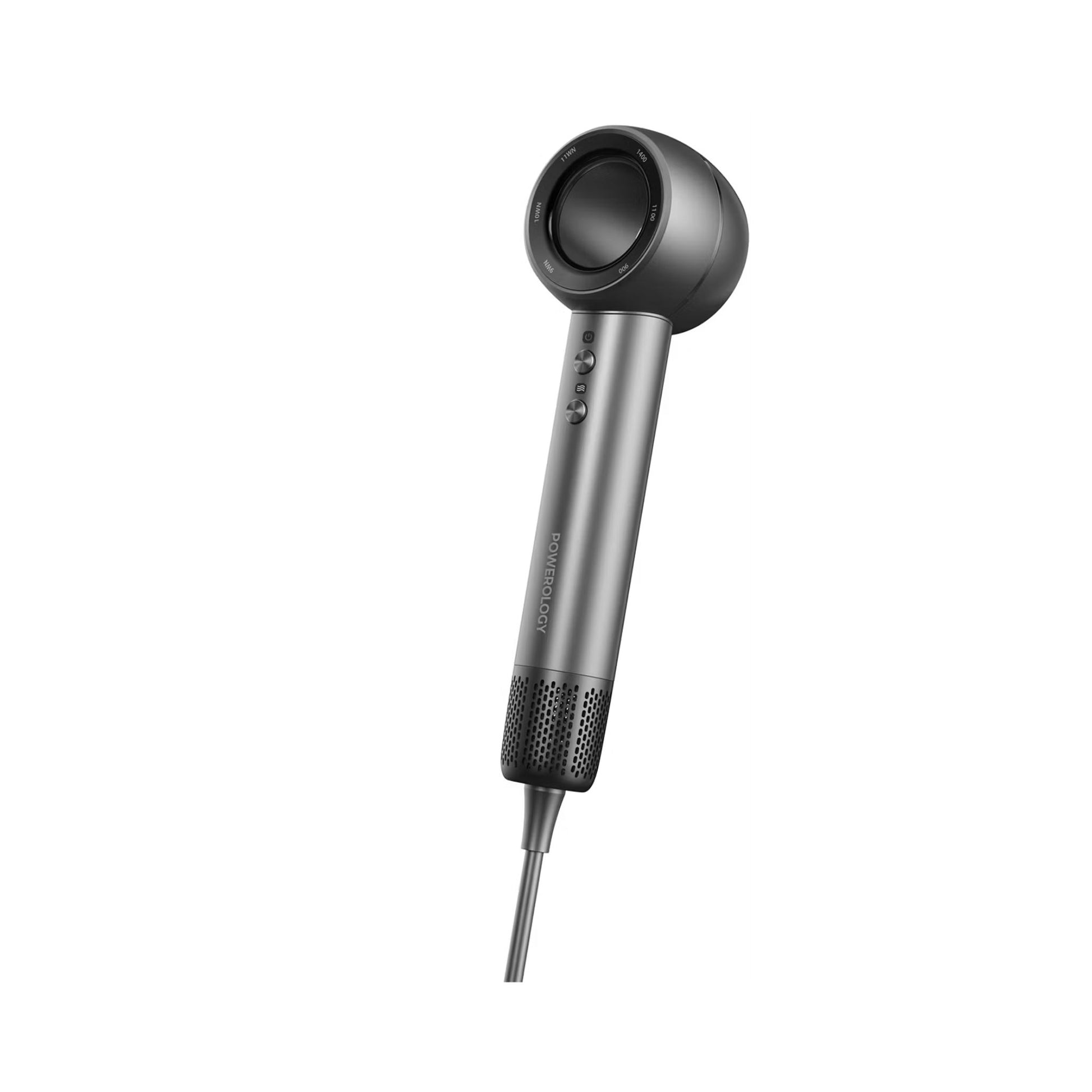 Powerology IonFusion Hot & Cold Hair Dryer, 1400W Rated Power, 65m/s Wind Speed, 4 Temperature Levels, High-Speed Brushless Motor, 1.8m UK 3-Pin Plug - Gray