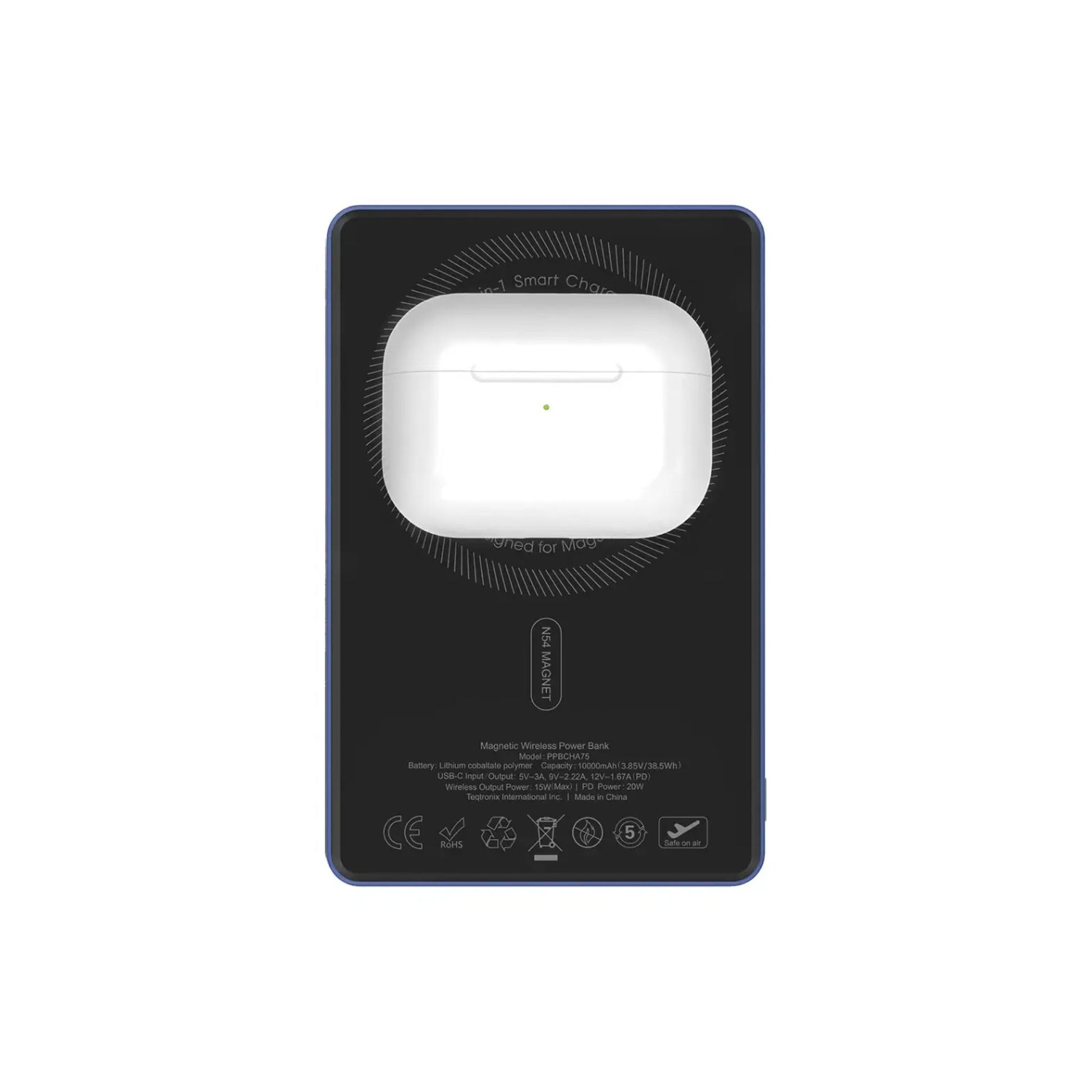 Powerology MagVolt 10000mAh Power Bank, 2.5W Watch Output, Up to 15W Phone Output, 20W Power Delivery, Ultra-Slim Design, Smart TFT Display, N54 MagSafe Compatible - Blue