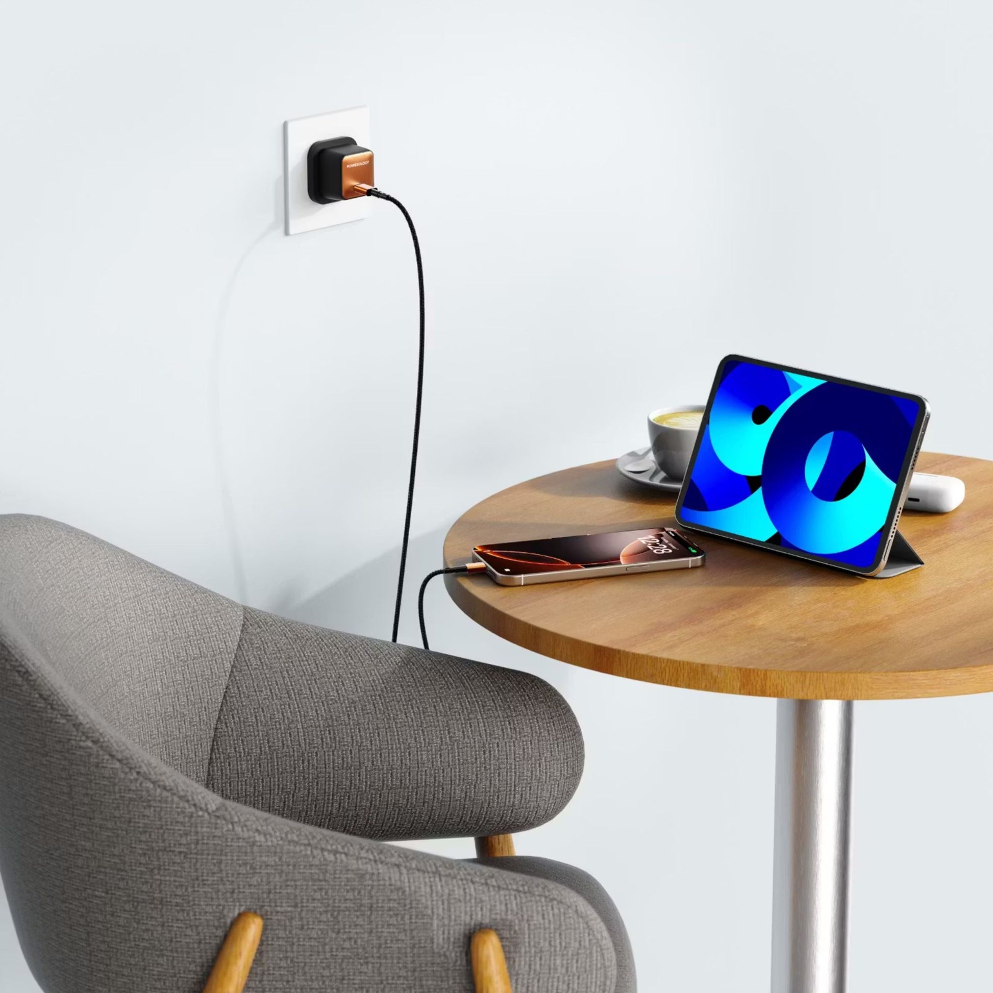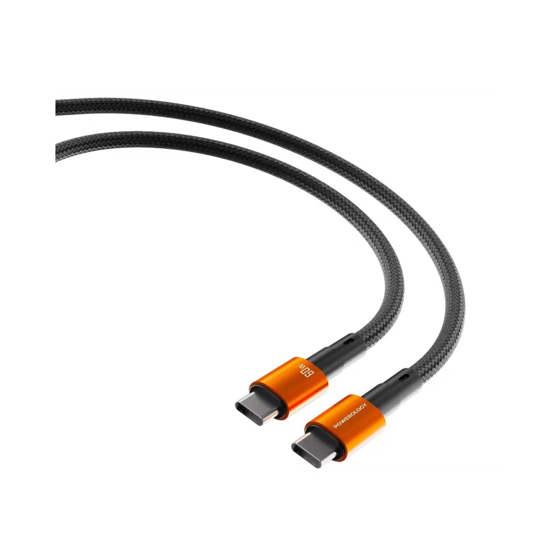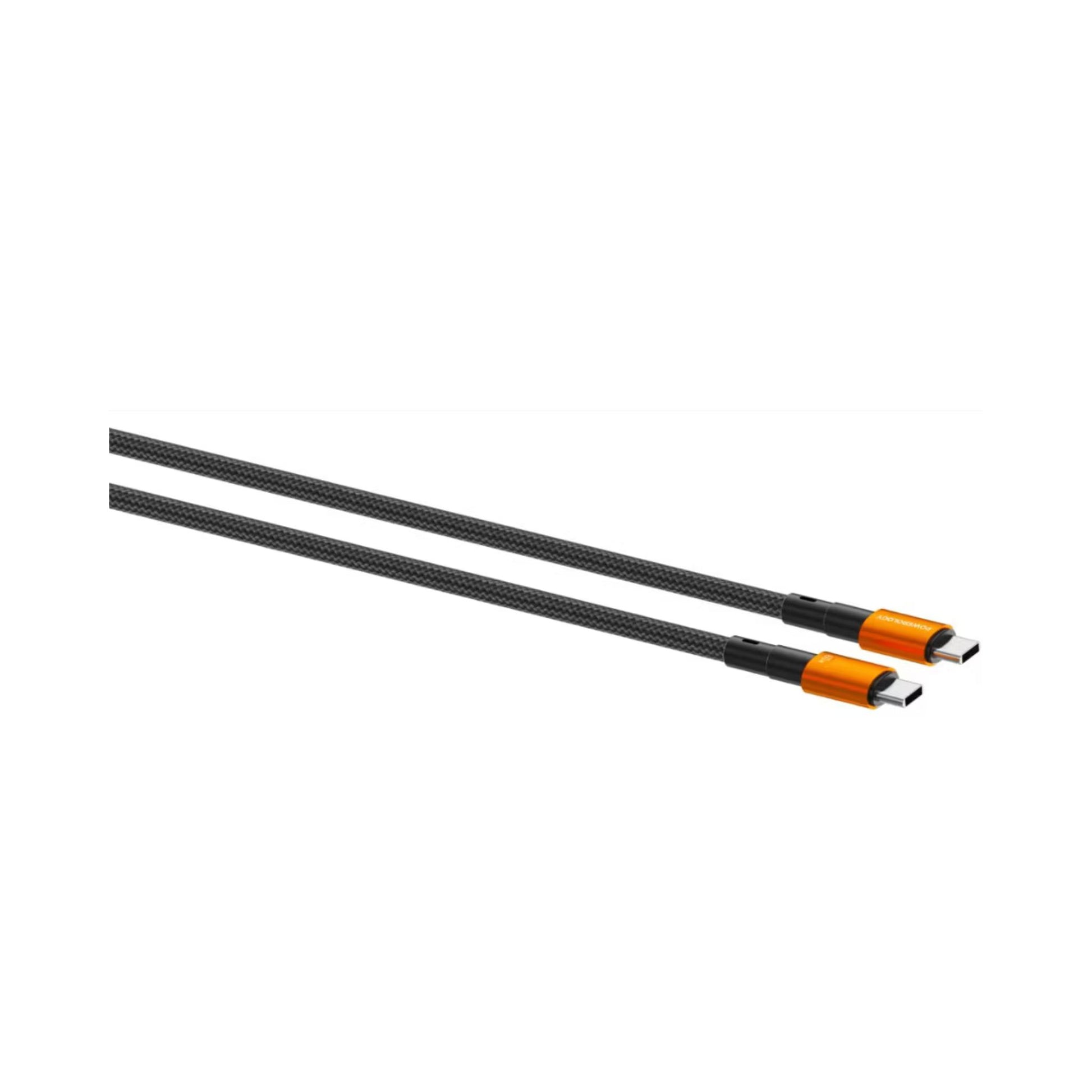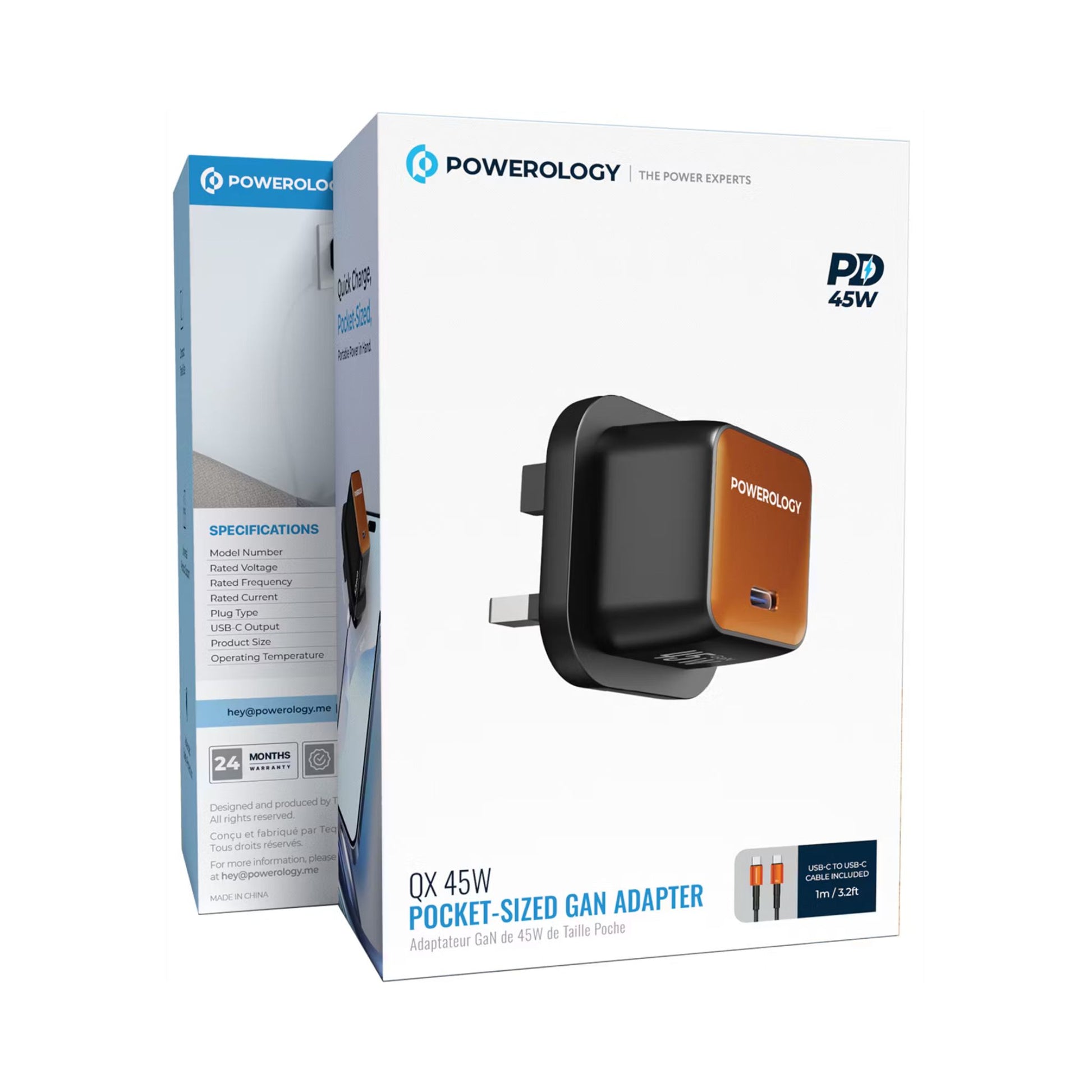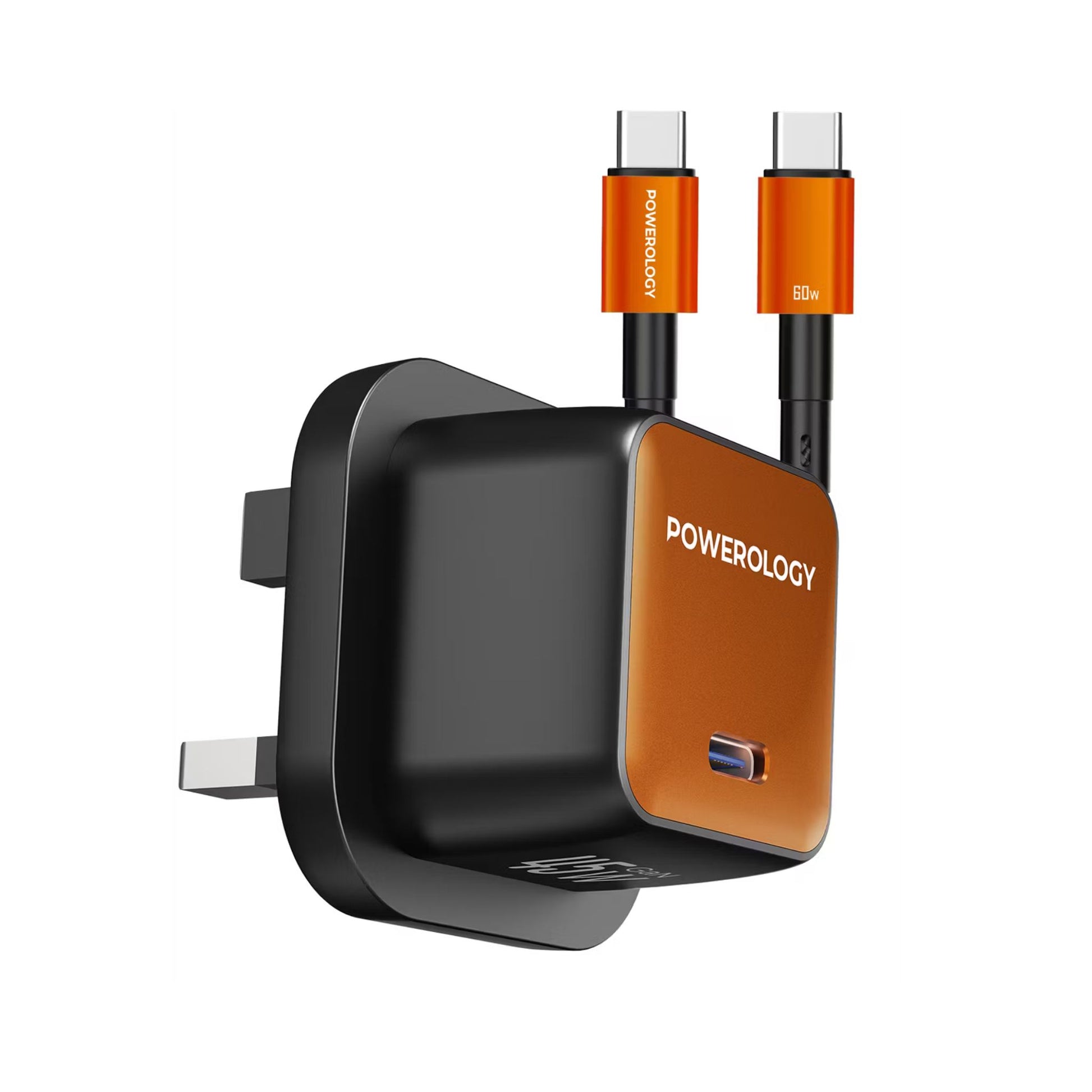 Powerology QX 45W Pocket-Sized GaN Adapter with Safety Protections, 1m USB-C to USB-C Cable Included, USB-C Port, Ultra-Compact Design, UK 3-Pin Plug, PD 45W - Black / Titanium Orange