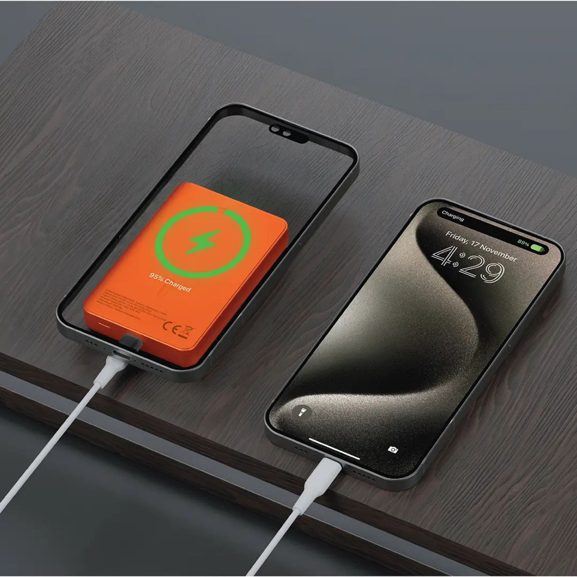The Powerology 10000mAh MagSafe Aluminum Power Bank in Orange combines powerful performance with a stylish design, making it a reliable companion for all your charging needs. With its powerful 10000mAh capacity and modern PD 20W fast charging, it guarantees that your gadgets will remain charged all day. The flexible USB-C connector allows for both input and output. It provides a 20W output for fast charging and an 18W input to recharge the power bank. This power bank has outputs of 5W, 7.5W, 10W, and 15W. It also supports wireless charging, so it is compatible with many devices, including MagSafe ones. Its simultaneous charging can charge many devices at once. It is ideal for busy days when you are always on the move. Its lightweight, compact shape and strong aluminum finish make it stylish and useful. You are always ready, thanks to features like the battery level indicator. It gives real-time updates on power availability. The Powerology MagSafe Aluminum Power Bank is a stylish, compact charger. It is reliable and flexible, whether at home, work, or on the road.