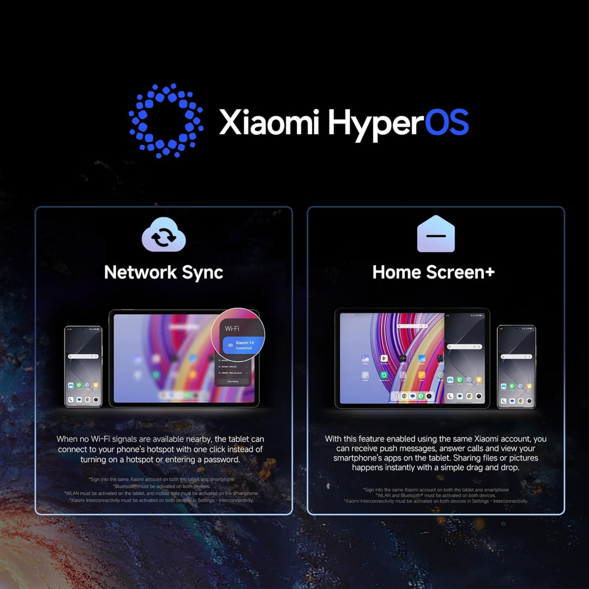 - Premium Design & Connectivity: Sleek Graphite Gray metal finish, lightweight at 566g, supports Nano SIM, WiFi + Cellular connectivity, voice calling, 3.5mm audio jack, and runs Android 14 powered by Xiaomi HyperOS, offering a versatile, modern tablet experience.