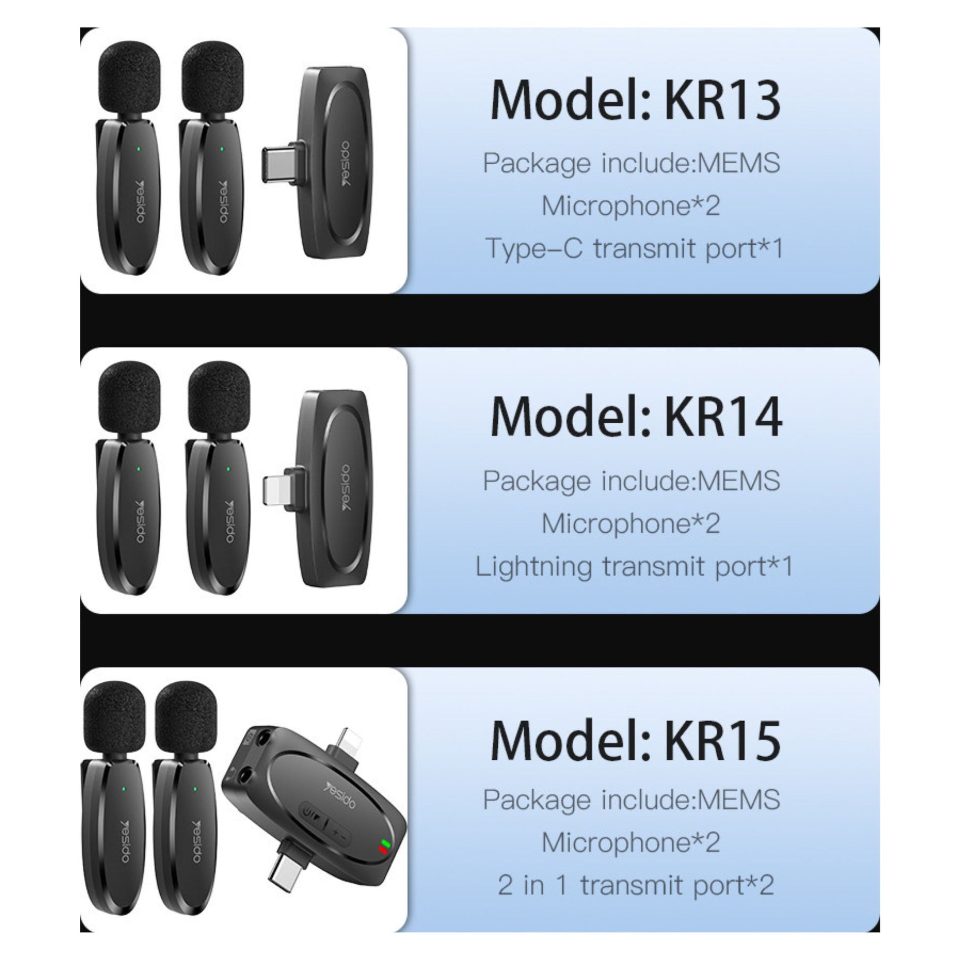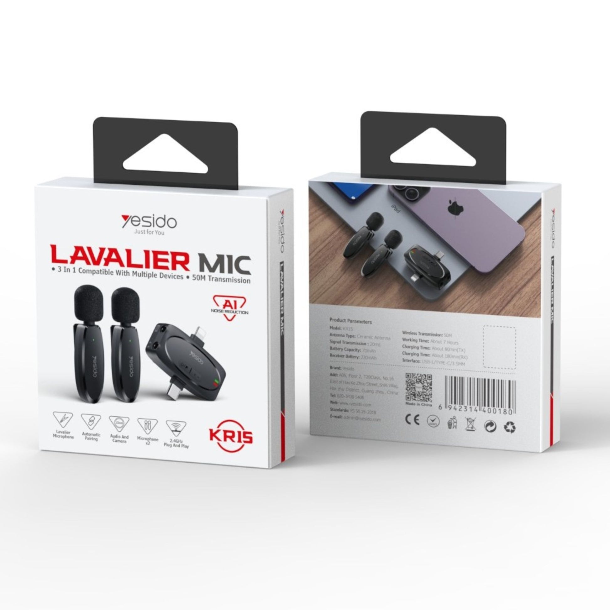 Yesido KR15 portable 360 pickup voice IP Type-c 2 in 1 transmit port 2 wireless MEMS Microphone.